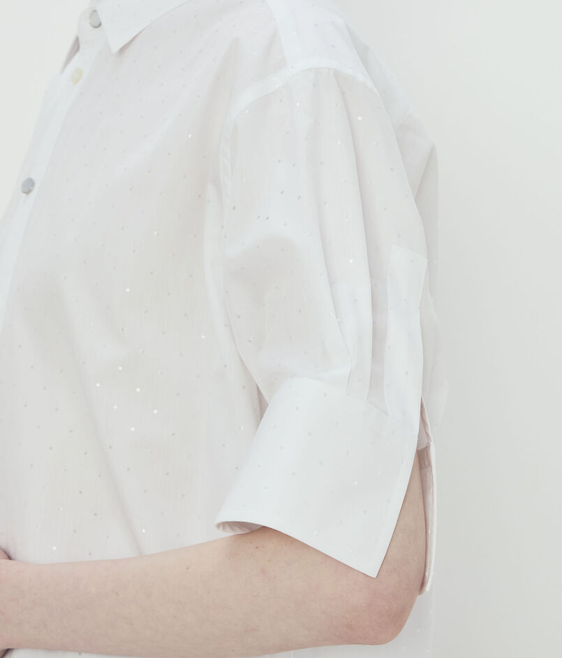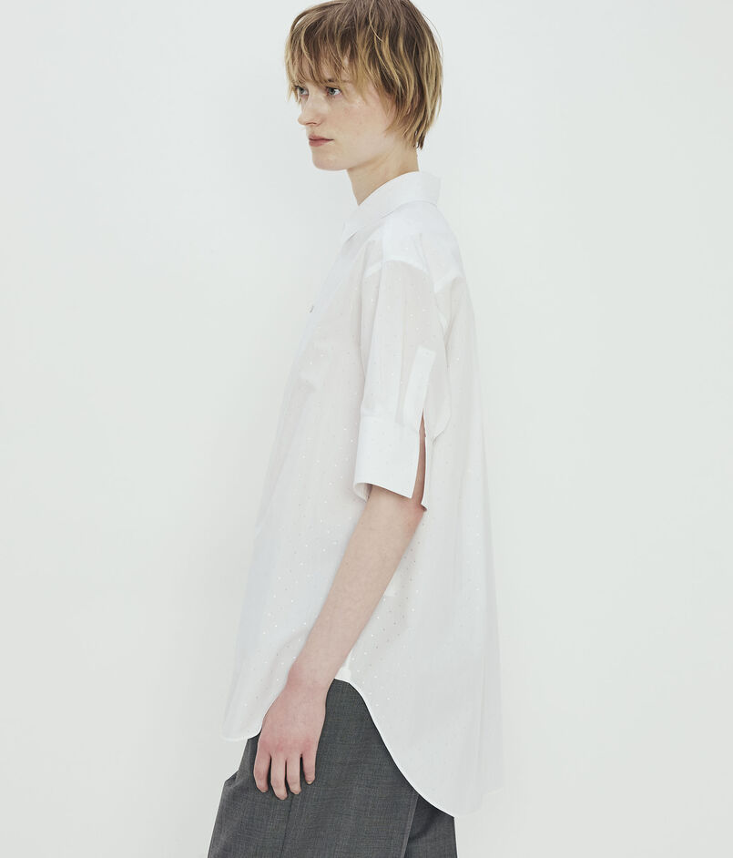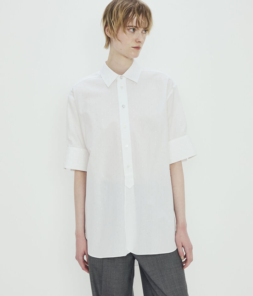 コットンレーヨン ホワイトドットハーフスリーブシャツ
