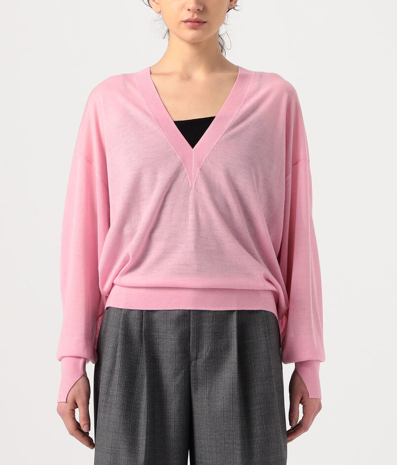 深めのVネックがシャープな印象のプルオーバーは、緩みのあるボディバランスが大人の抜け感を演出します。