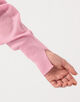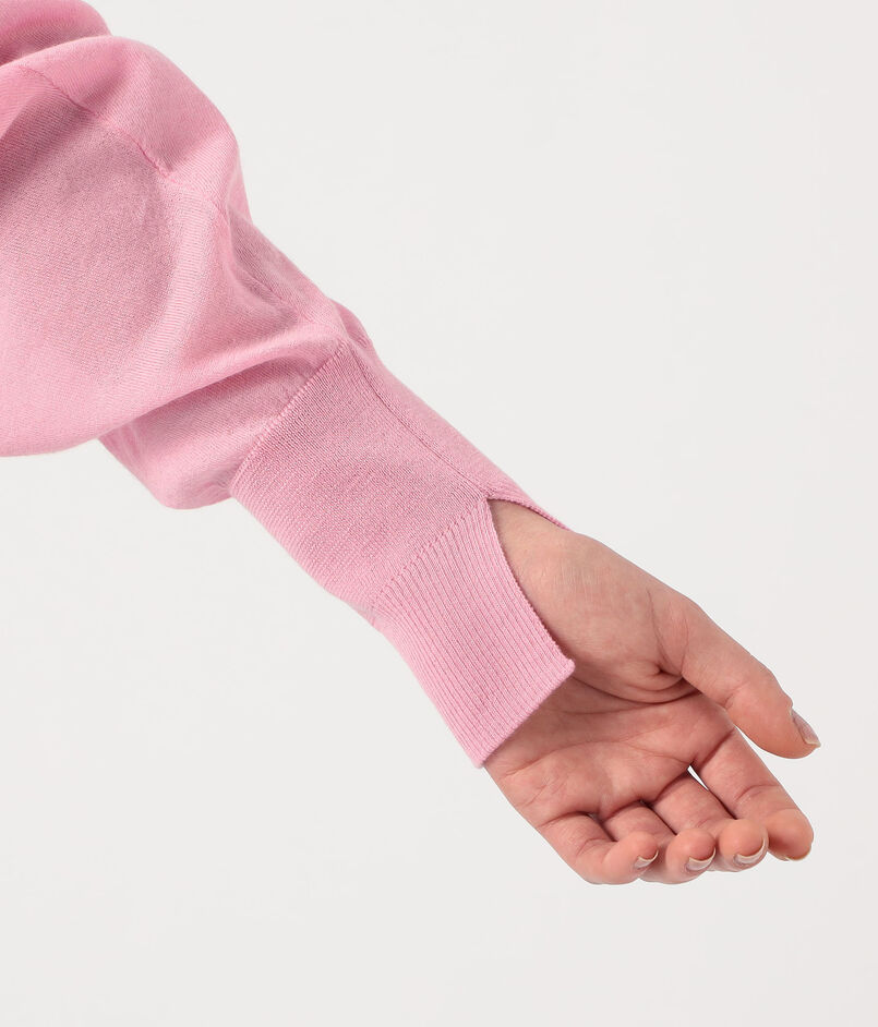 袖口リブは2段階に編み変えており、袖口のスリットから親指が覗くように長く伸ばして着たりスリット部分を折り変えすのも素敵。