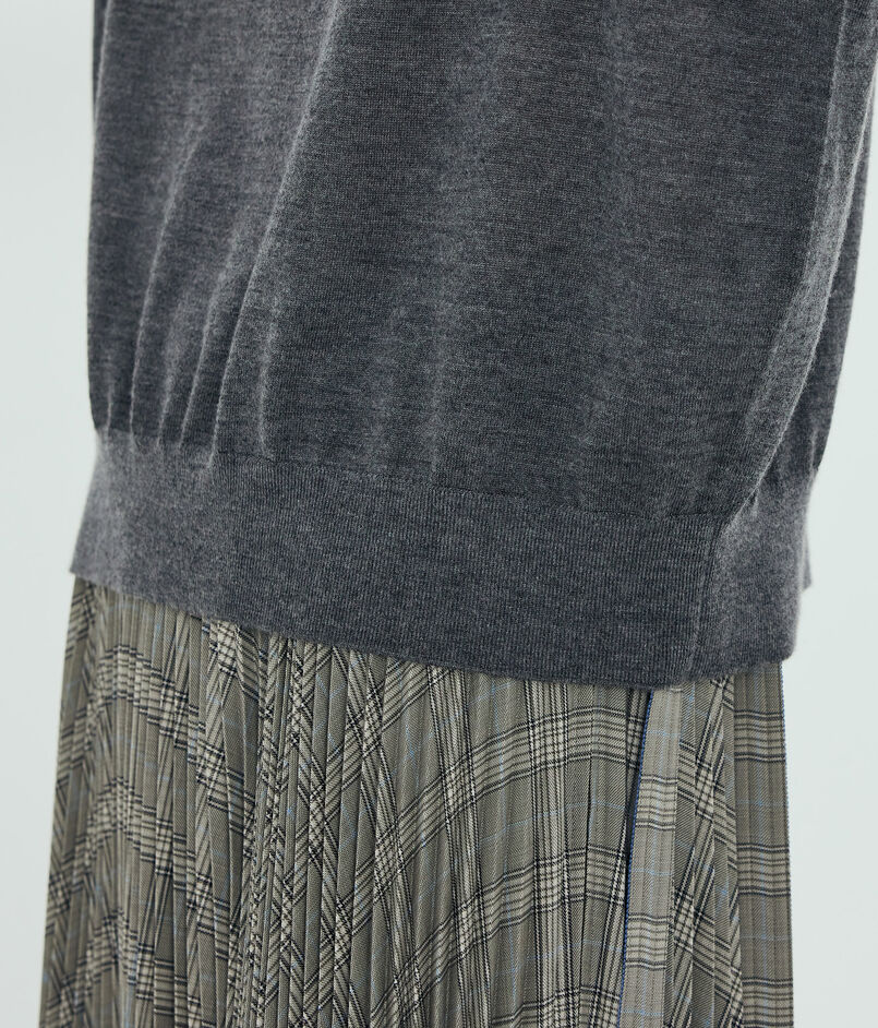 高めのネックと袖のカフスのようなスリットデザインをポイントに、モードな印象の上質な一着に仕上げました。