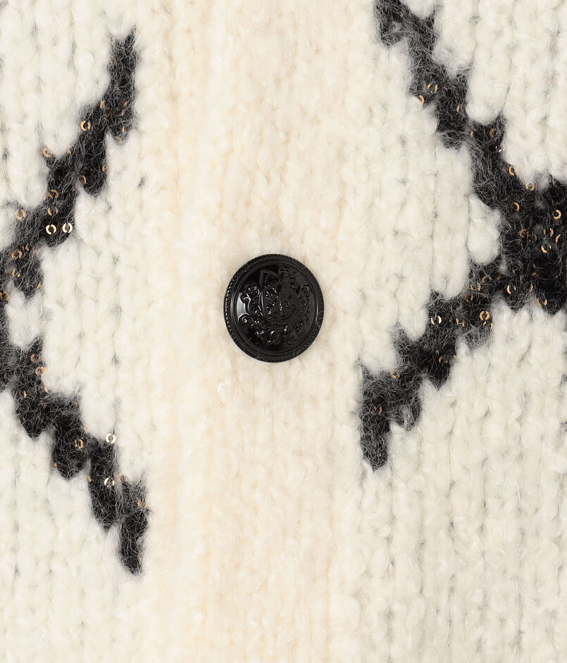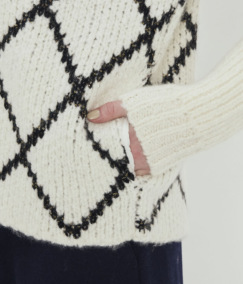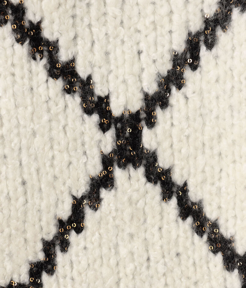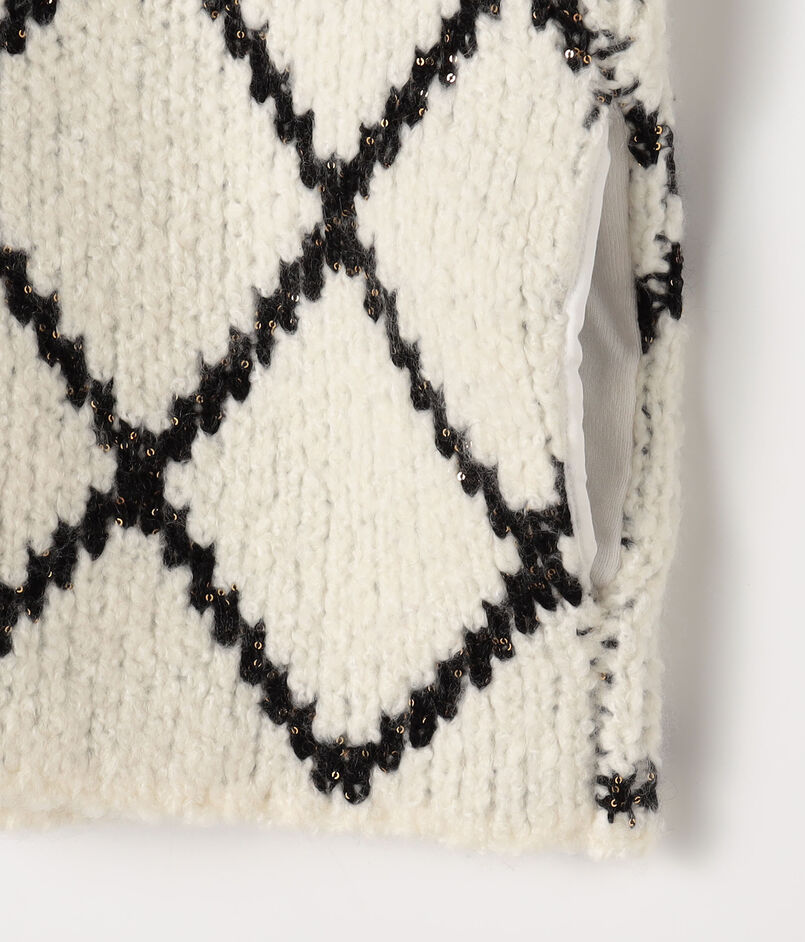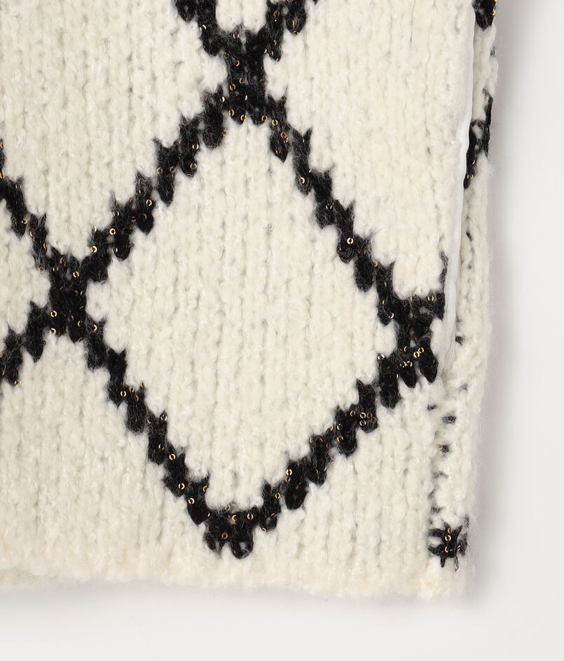 ダイヤモンドチェックのブラックのラインにはゴールドのスパンコールを引き揃え、さりげなくキラッと光るアクセントをプラス。