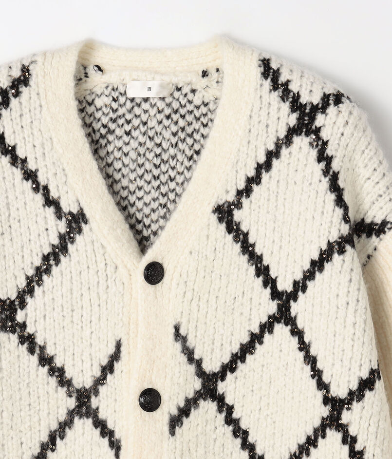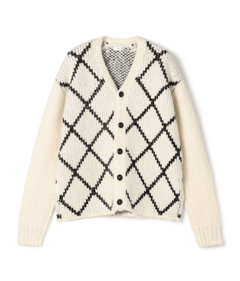 カシミヤシルク モノトーンアーガイルVネックカーディガン