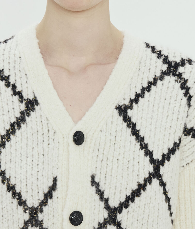 カシミヤ モノトーンアーガイルVネックカーディガン