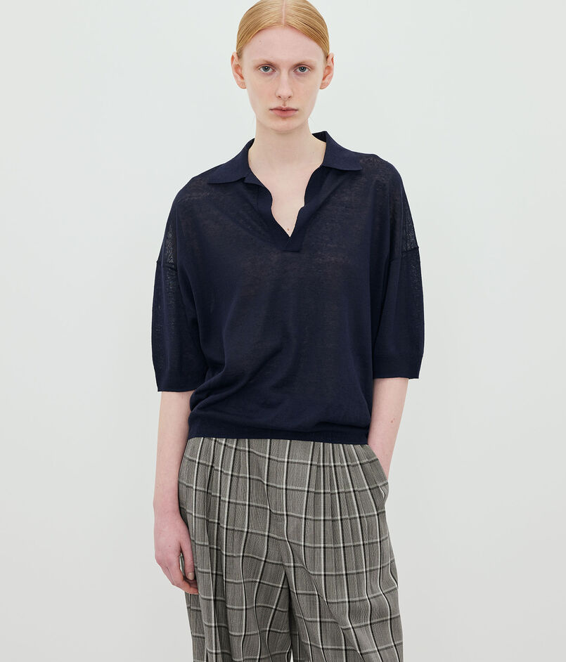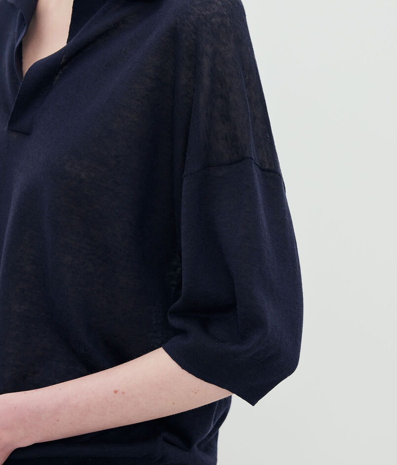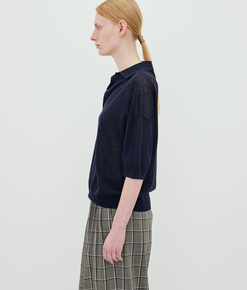 極細番手ならではの繊細な表情はハイゲージで編むことでさらに洗練され、肌に触れた瞬間の軽さとクリーンな表情が際立ちます。