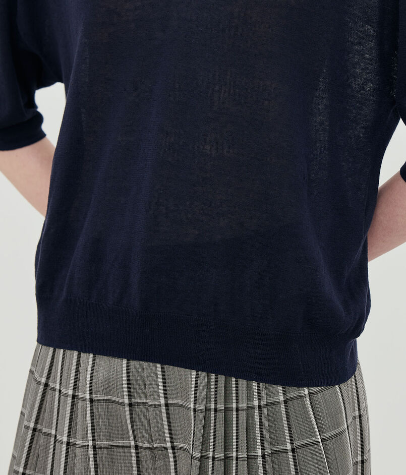 緩み感のある大人のスキッパーニットは、五分袖とゆったりとしたシルエットが生むほど良い抜け感が魅力です。