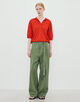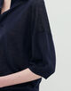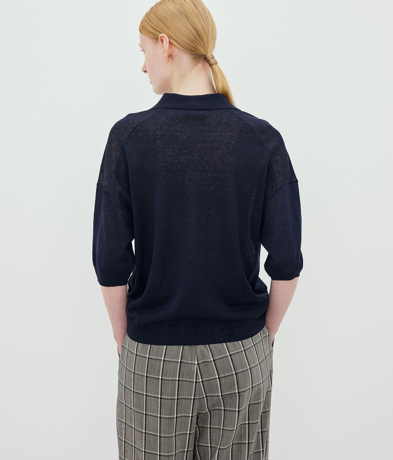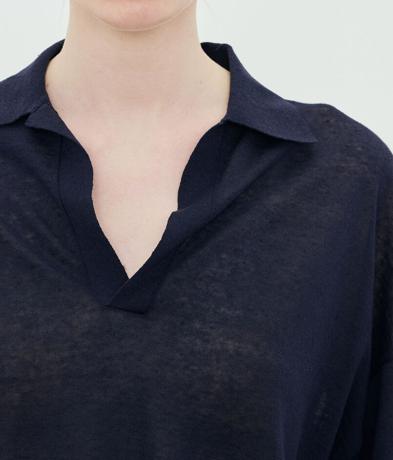 首元はスキッパーデザインにすることで、リラックスした雰囲気の中にも大人の品の良さをプラス。