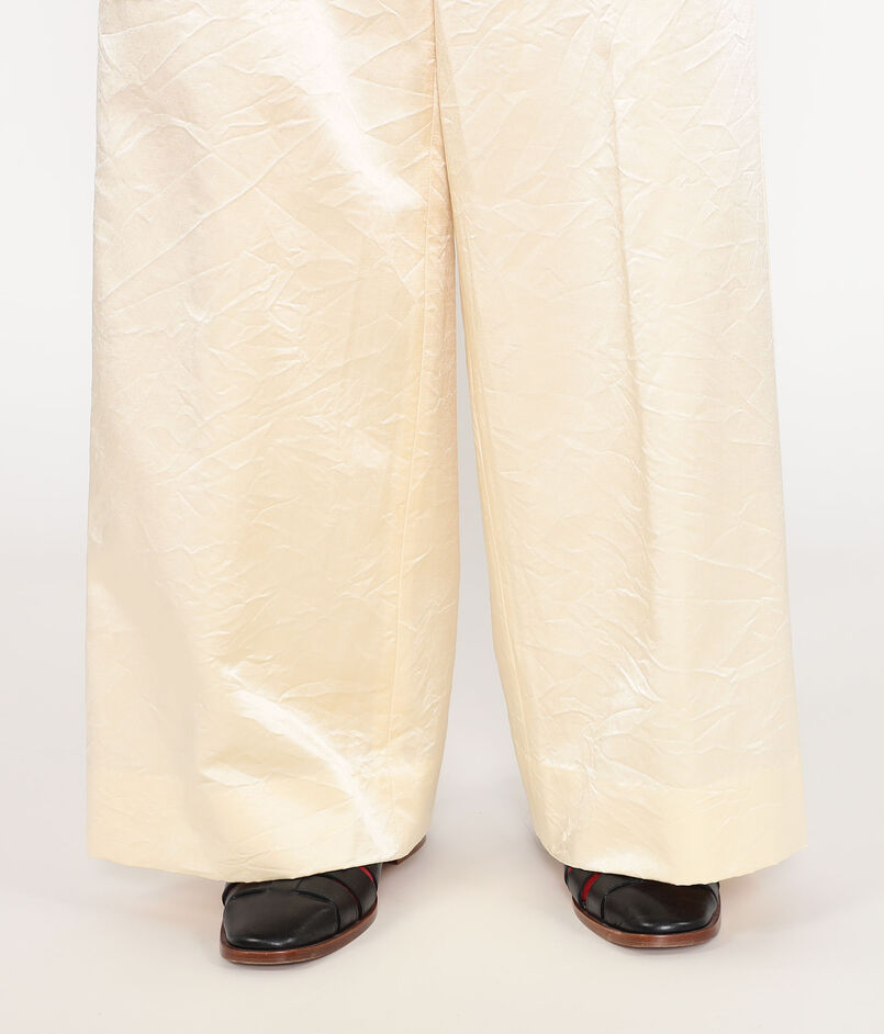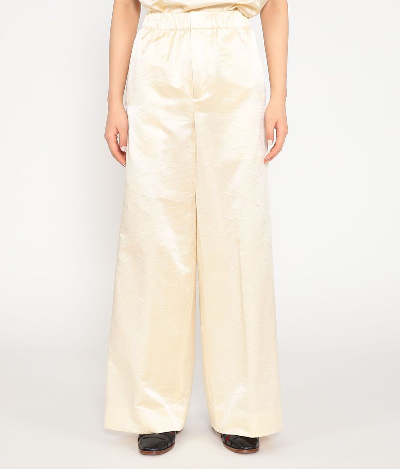 シンプルかつ大人なラグジュアリー感のあるパジャマパンツ。
