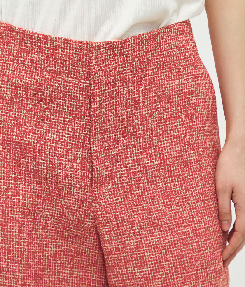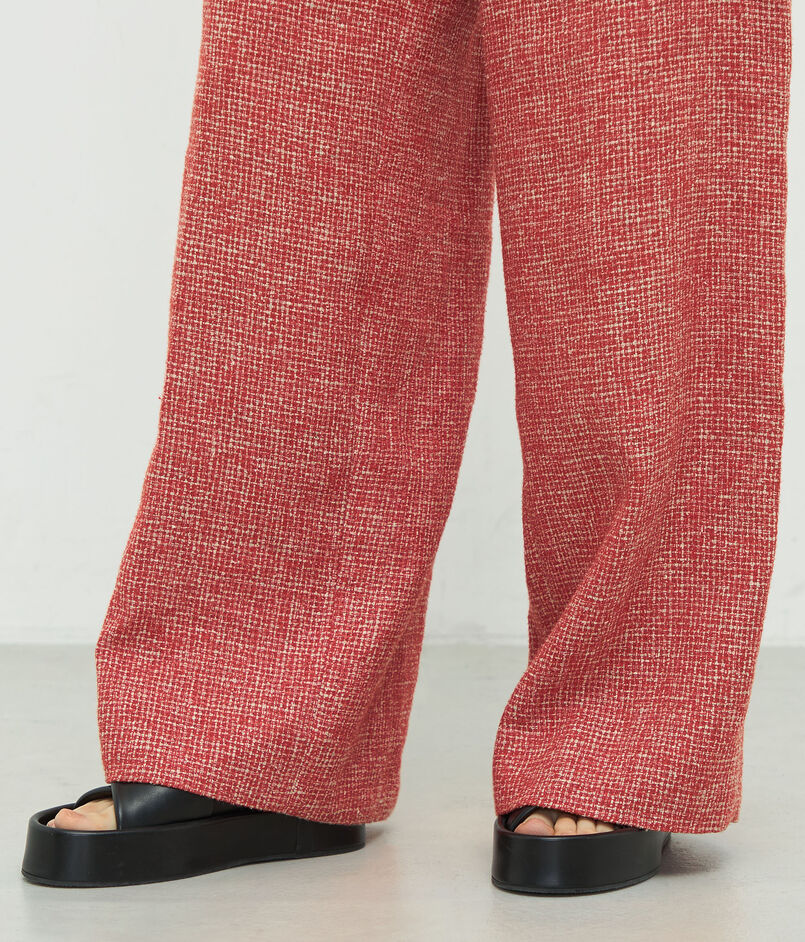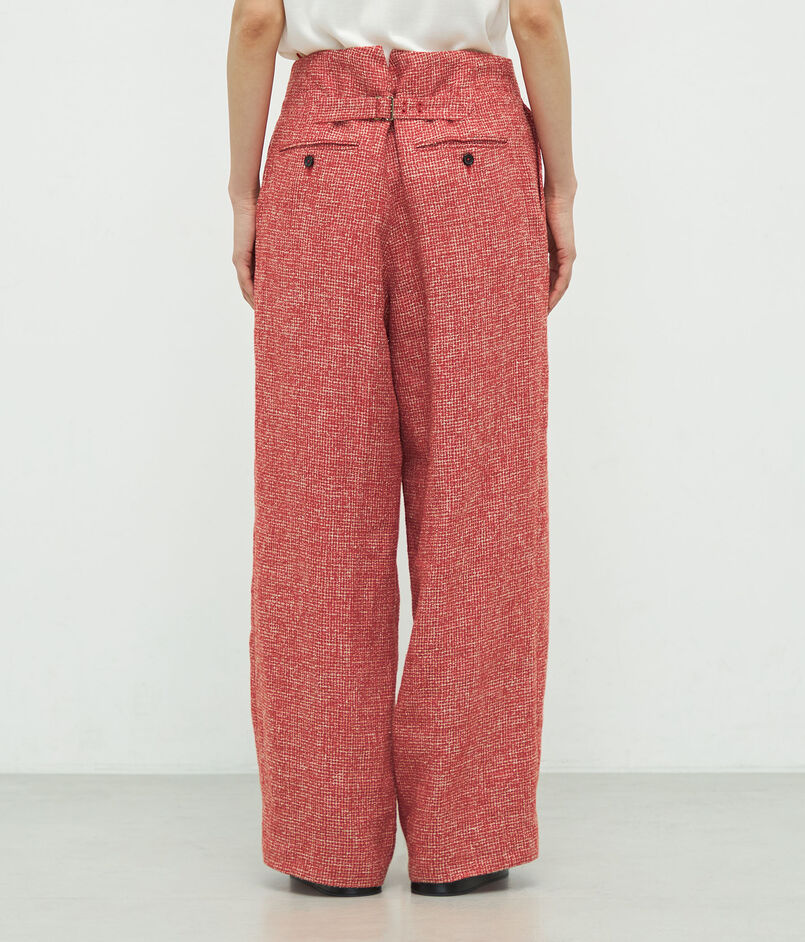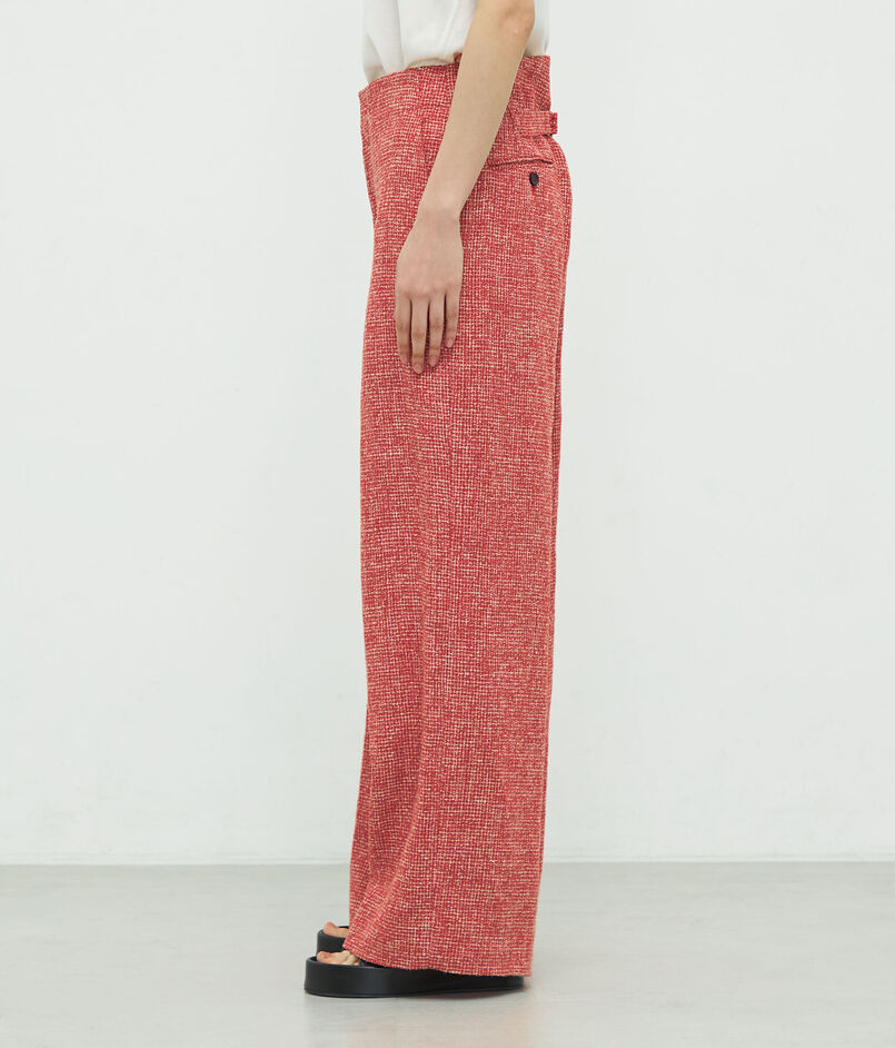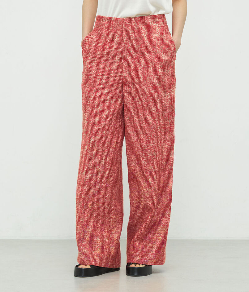 ウエストまわりをすっきりと仕上げたワイドパンツです。