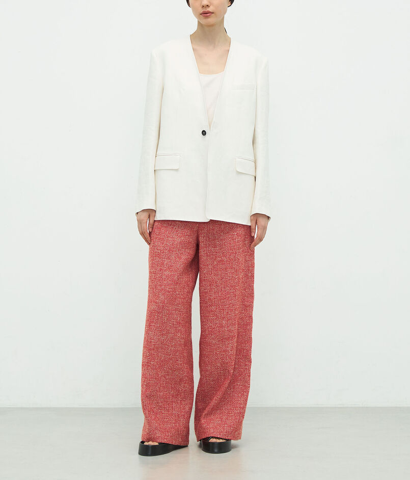 リネンシルク糸を使用したナチュラルなミックス感のあるツイード素材を使用したシリーズ。