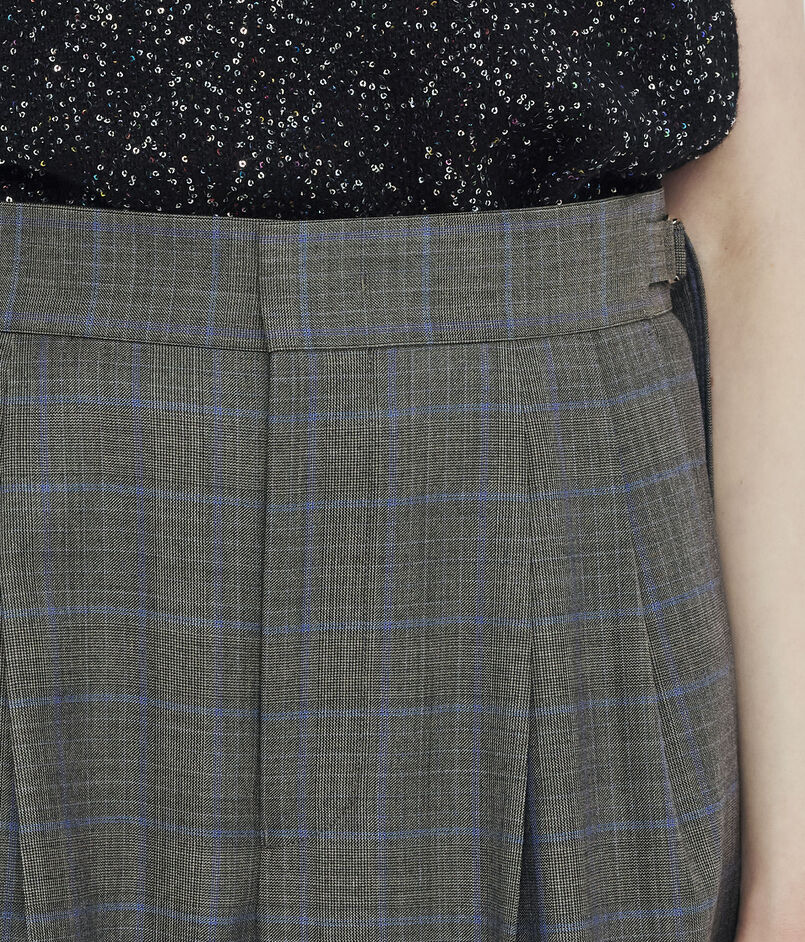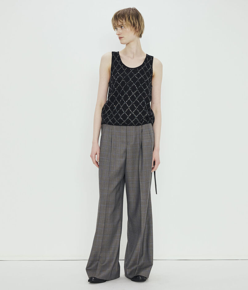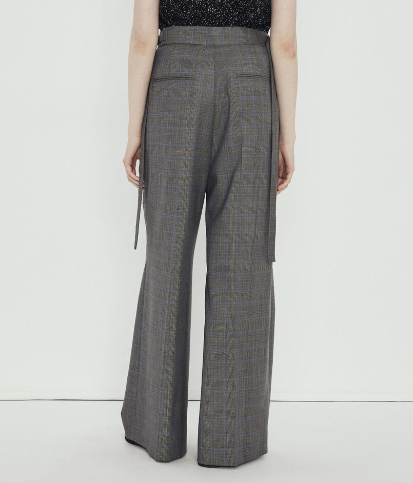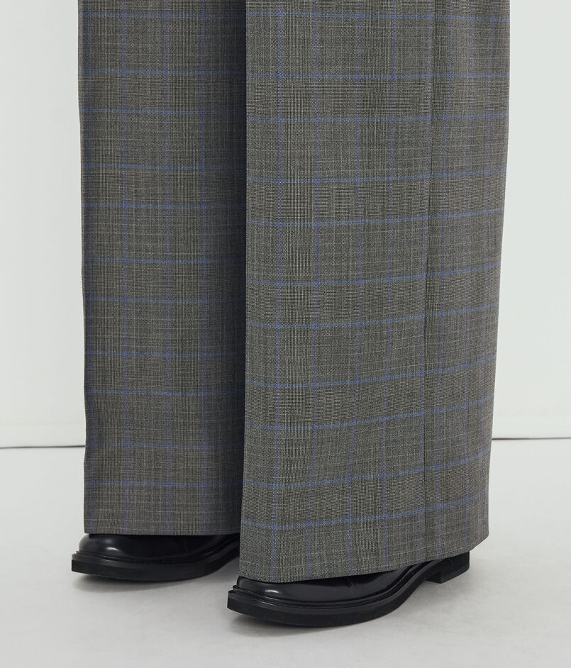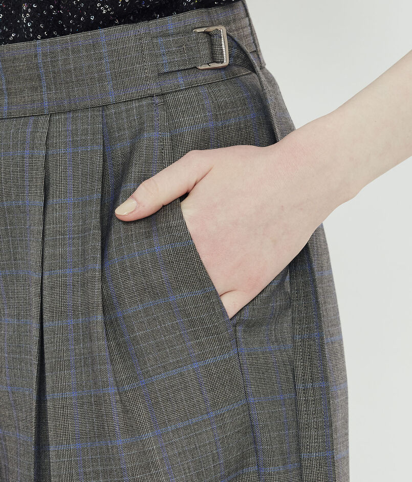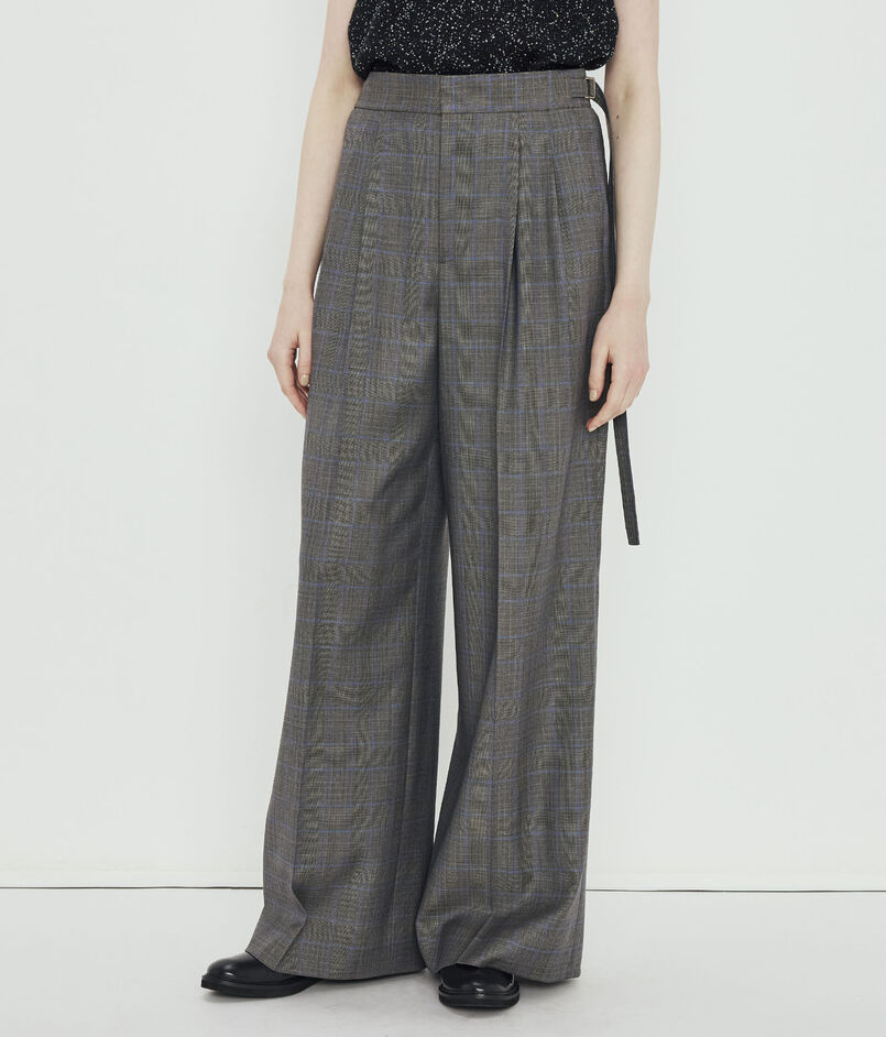 2タックのワイドパンツは、サイドのバックルでギュッと絞めて着用していただくパンツ。