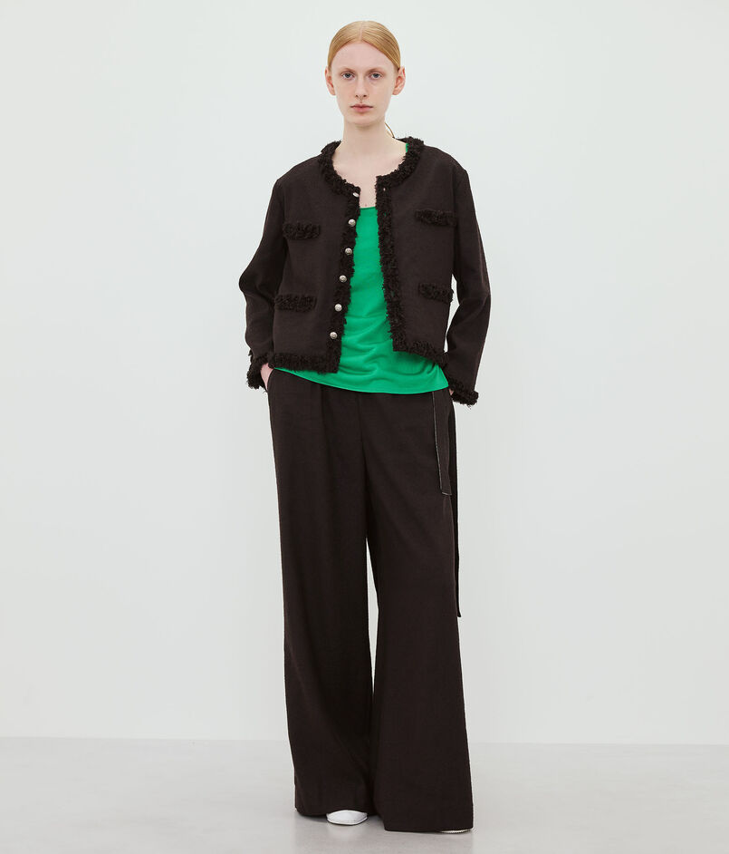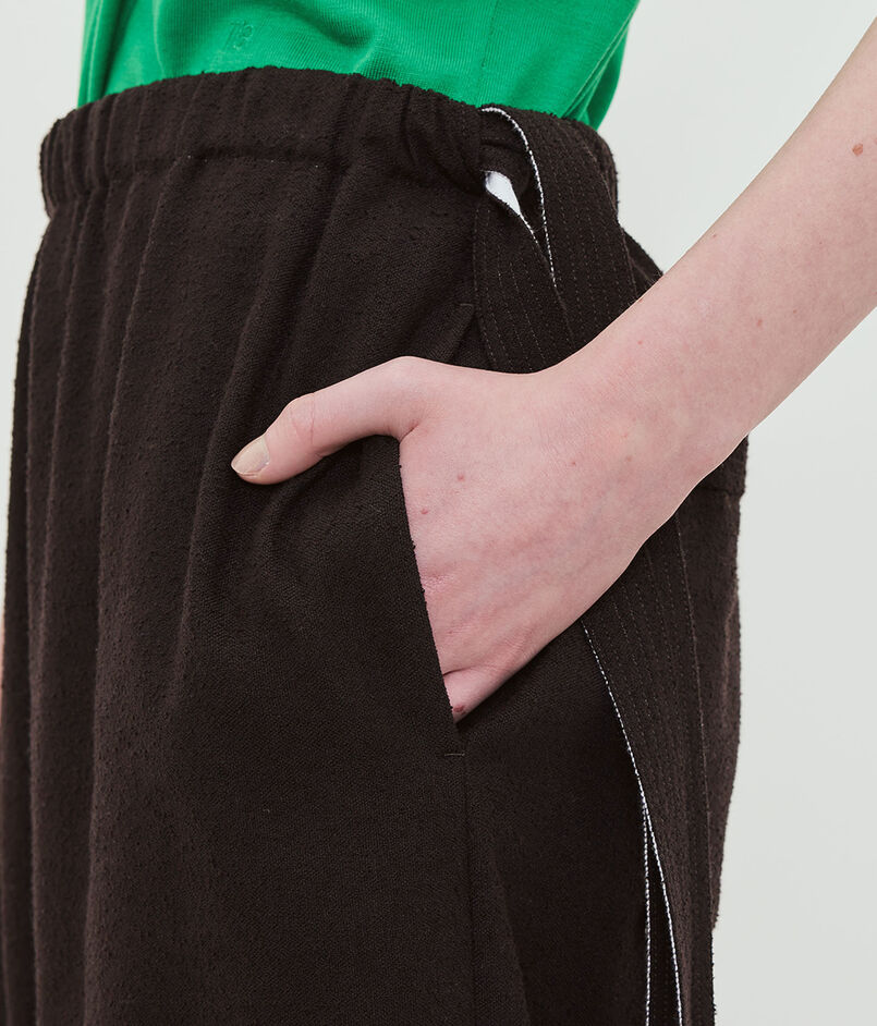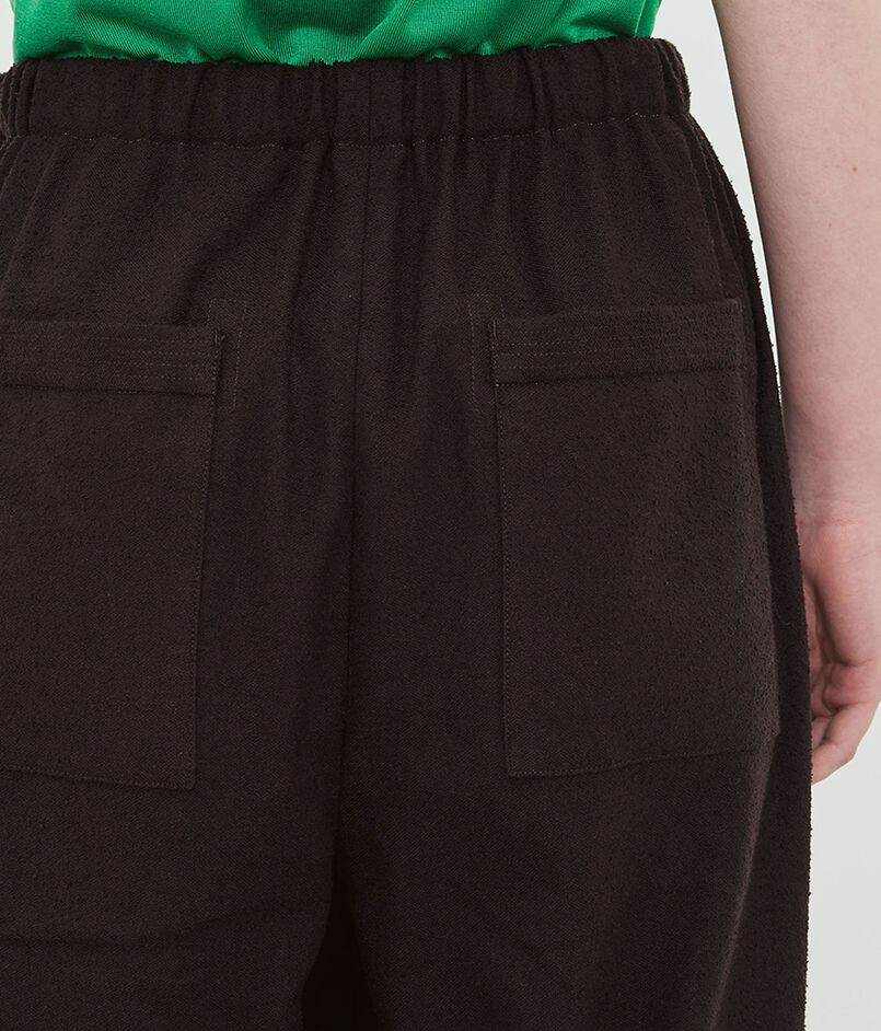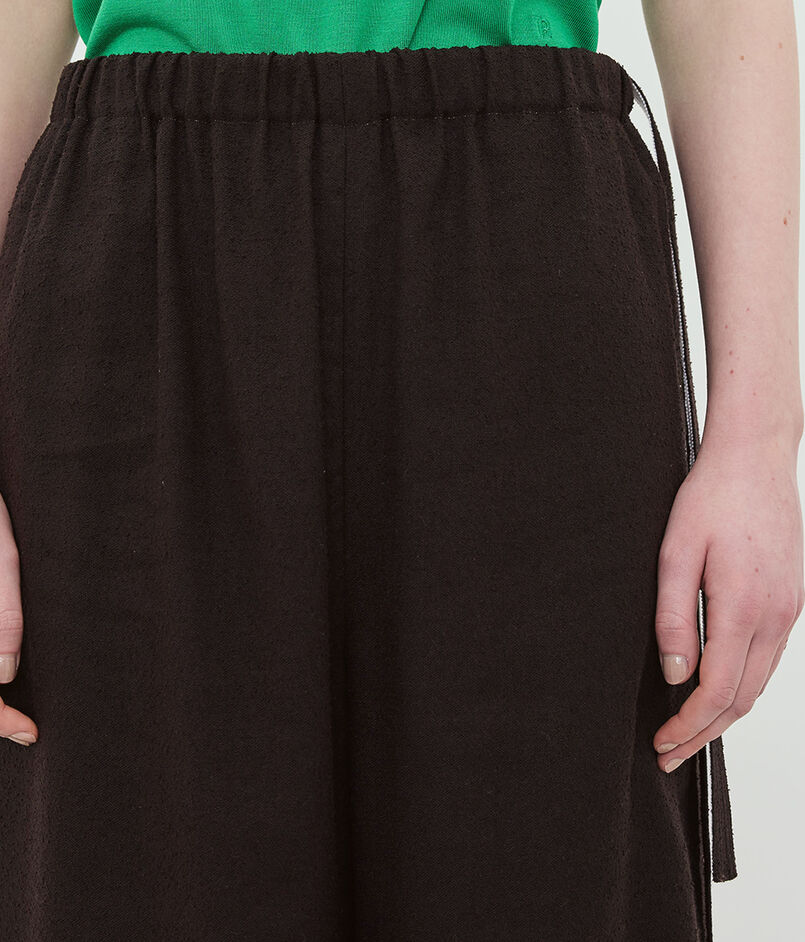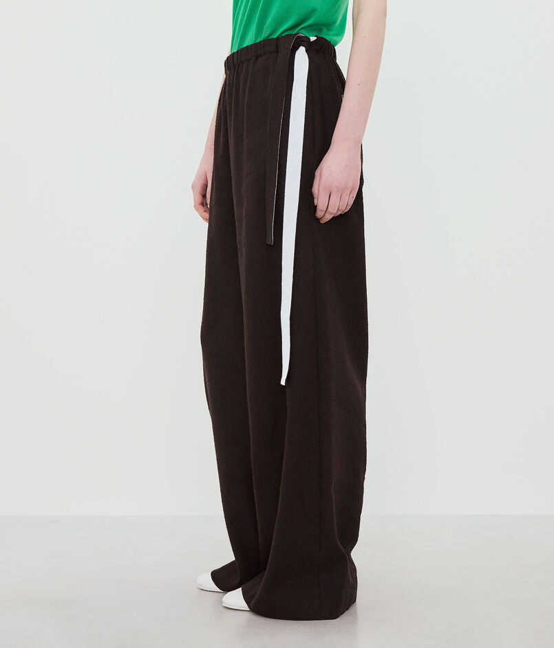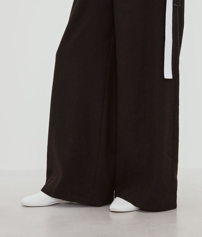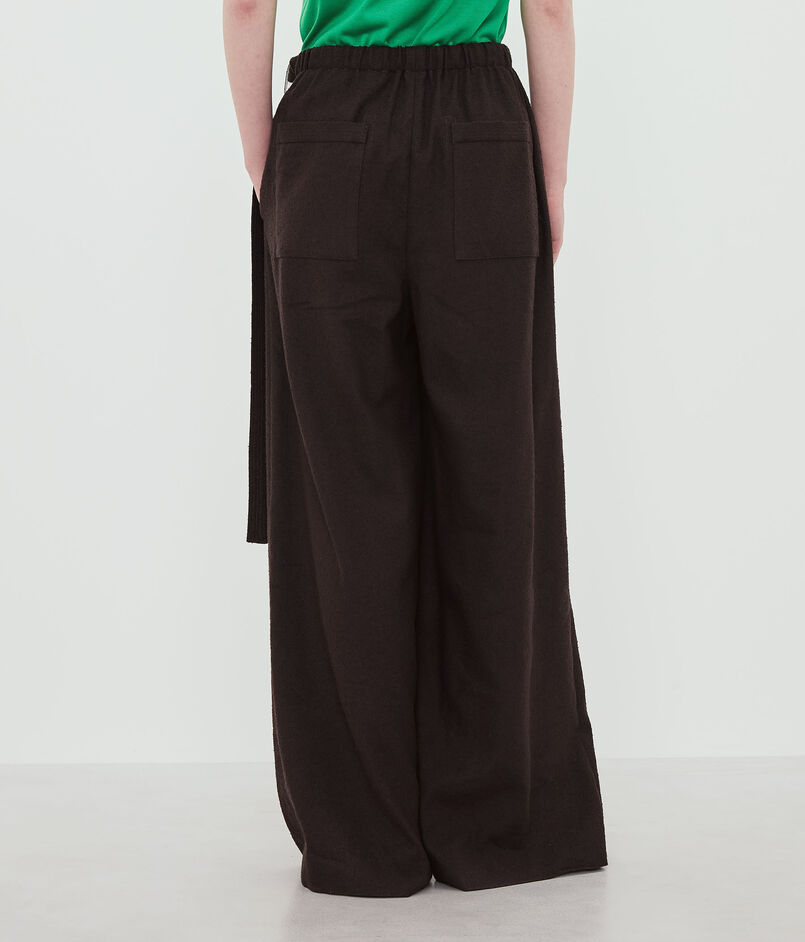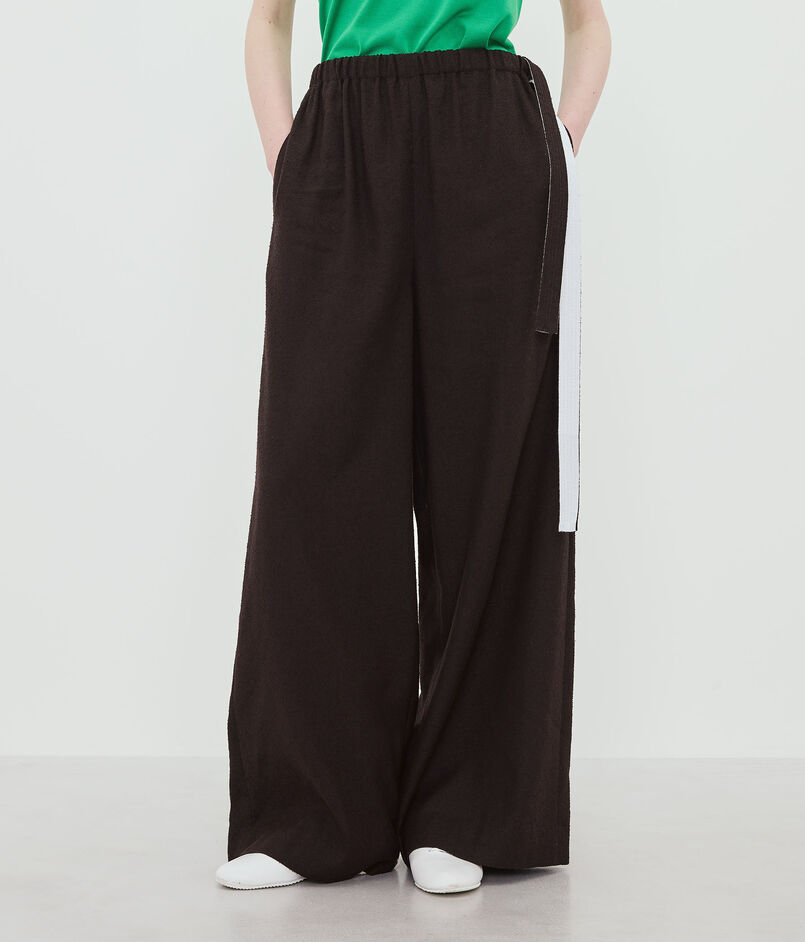 ほど良くゆとりを持たせたサイズ感のウエストドローストリングパンツは、生地の落ち感が美しくリラックスした雰囲気の中にも上品さを感じられる一本。