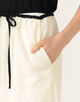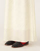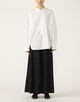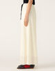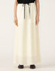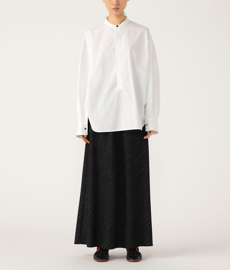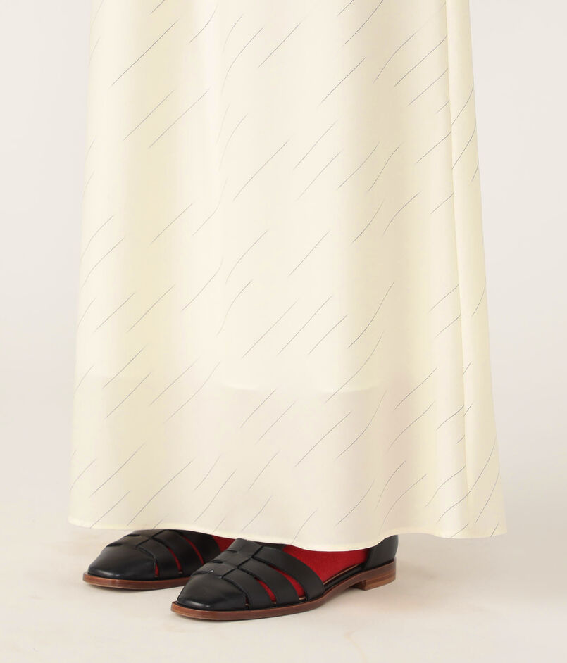 Aラインのロングバイアススカートは、生地の落ち感を活かしたシンプルなデザインに。