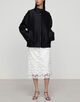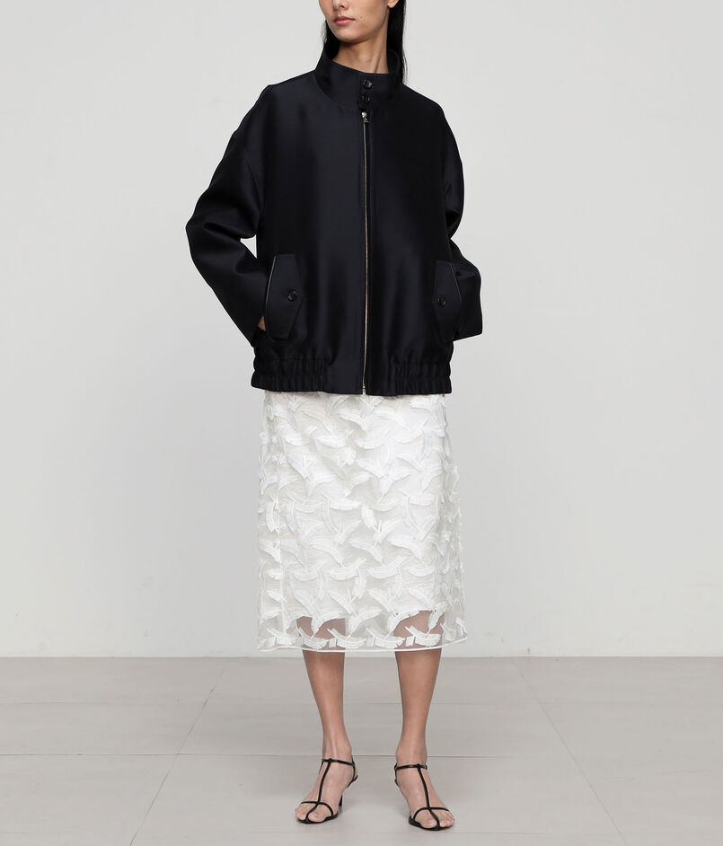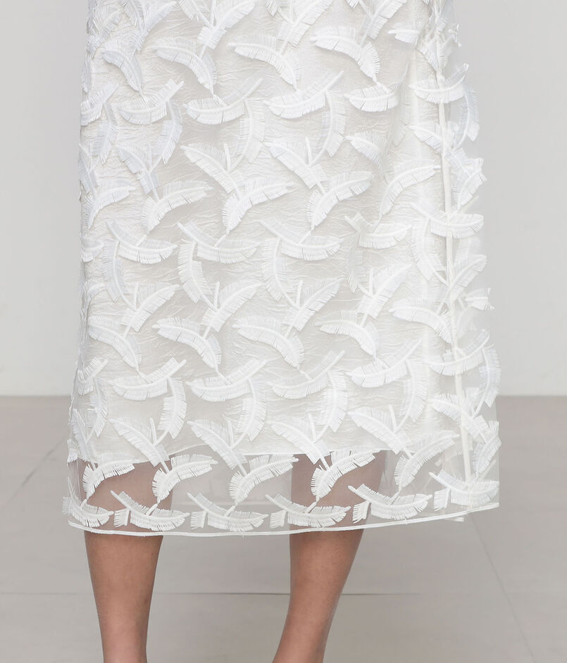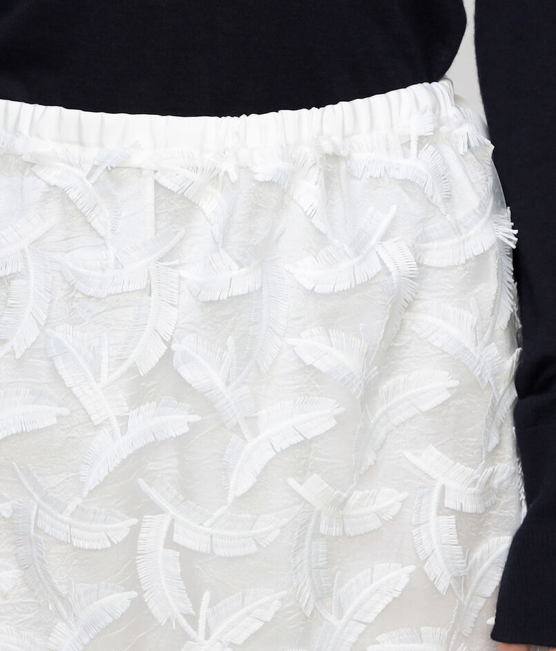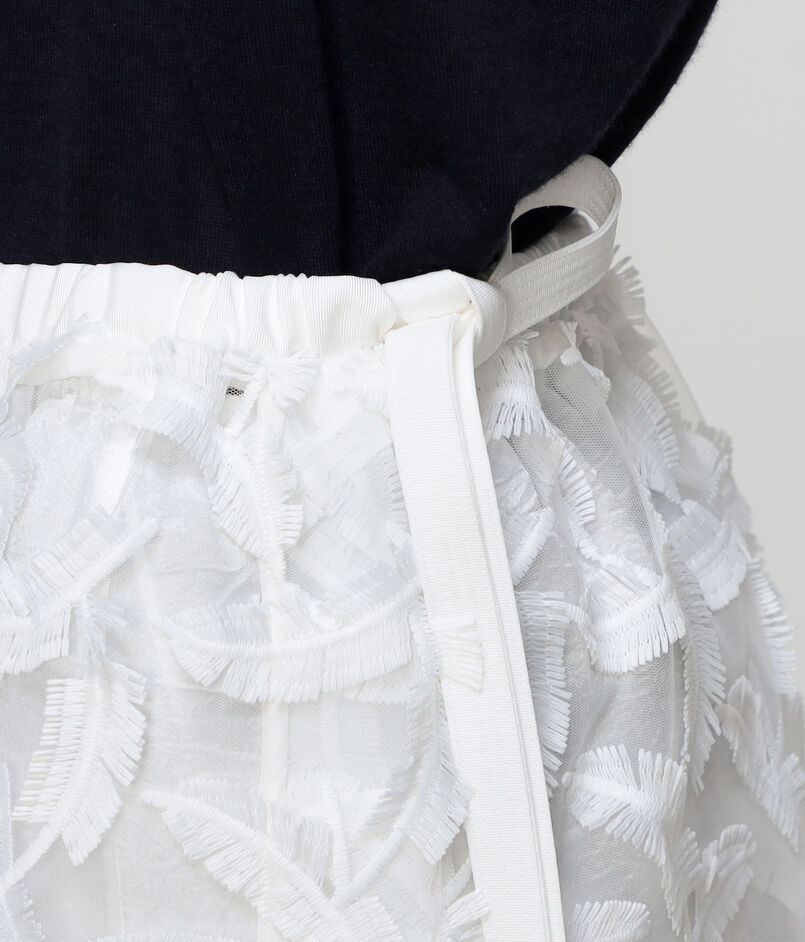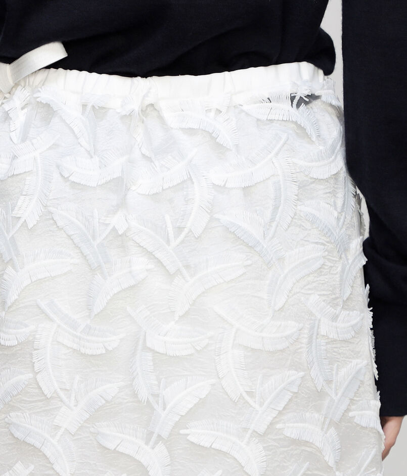 羽モチーフ刺繍は立体的な手法で施されており、揺れ動く凸凹感が美しい生地です。