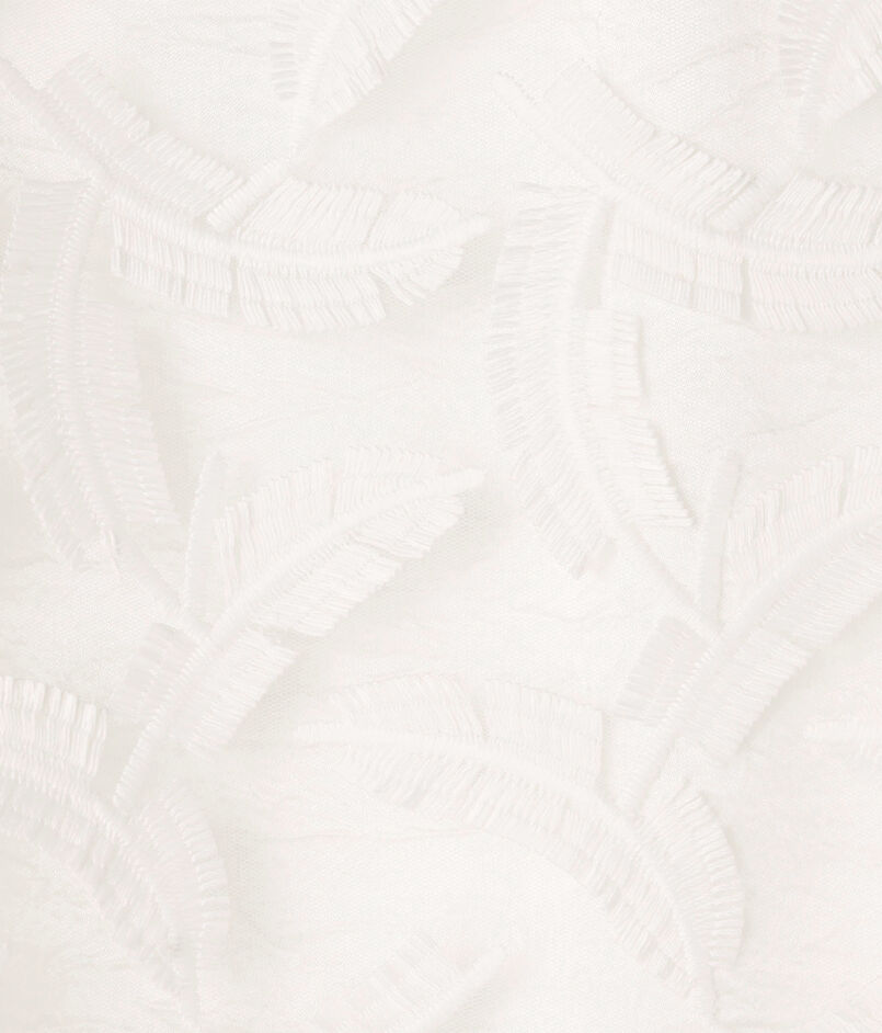 繊細な極細ポリエステルチュールグランドの上に羽のモチーフを施したエンブロイダリーシリーズ。