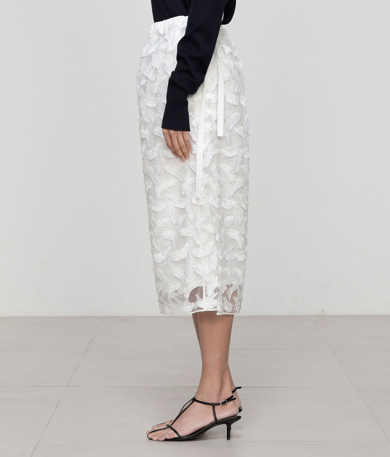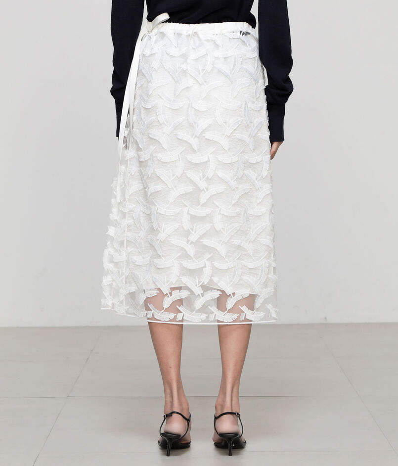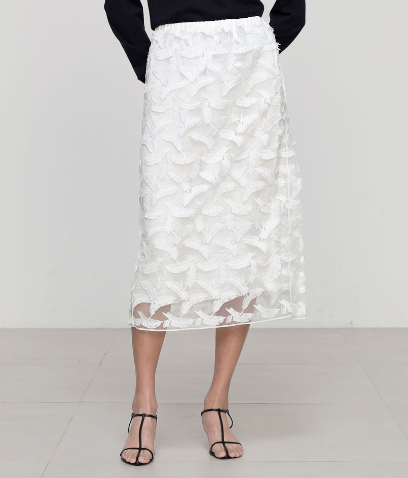 ペチコート付きなので、スカートとして着るのはもちろん、シアー感を活かしたパンツとのレイヤードスタイルもおすすめです。