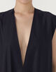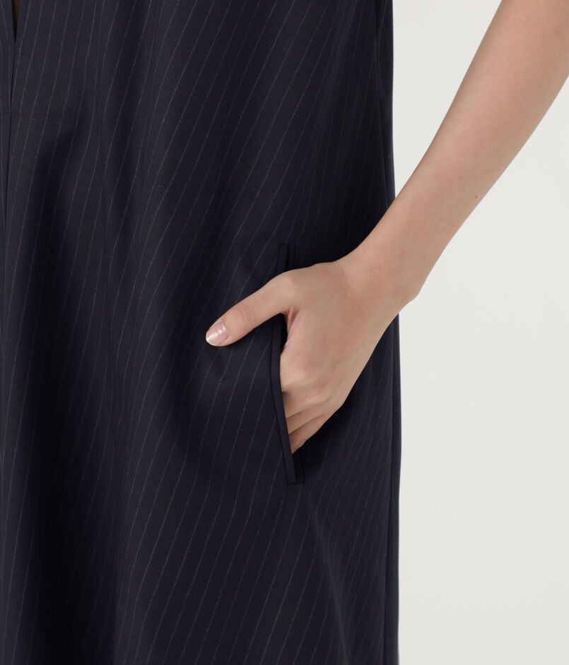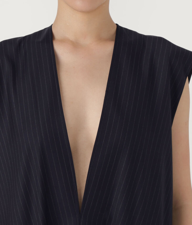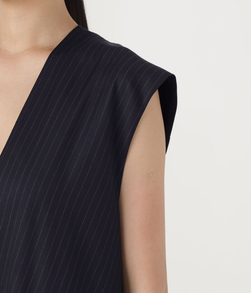 Vネックの開き部分は地の目を通しているので、よれることなくシャープな表情に。