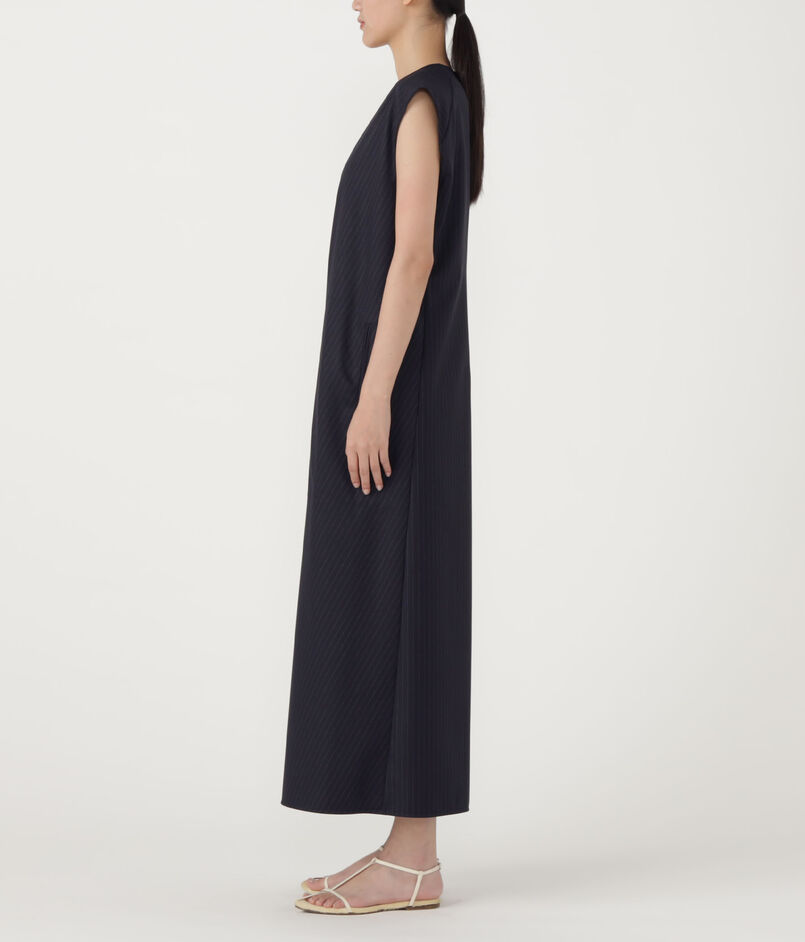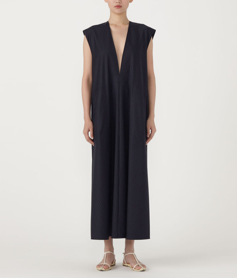 キャップスリーブのロングワンピースは、シンプルながら素材の流れるようなシルエットが美しい一品。
