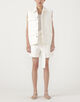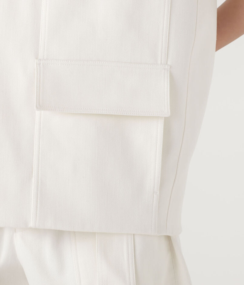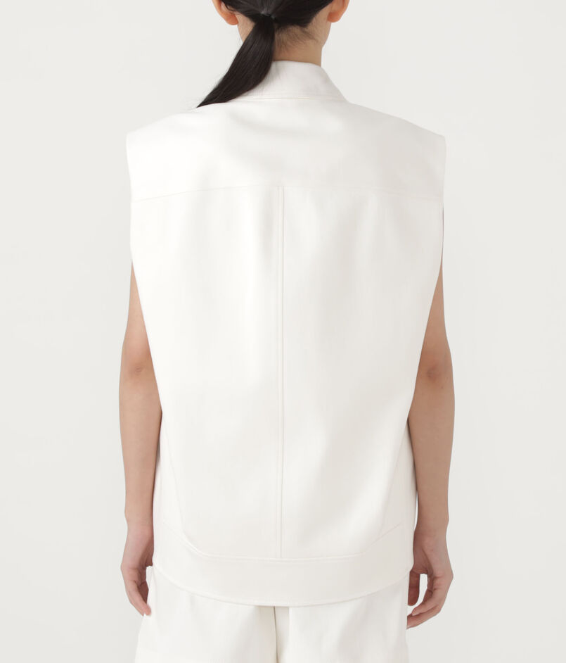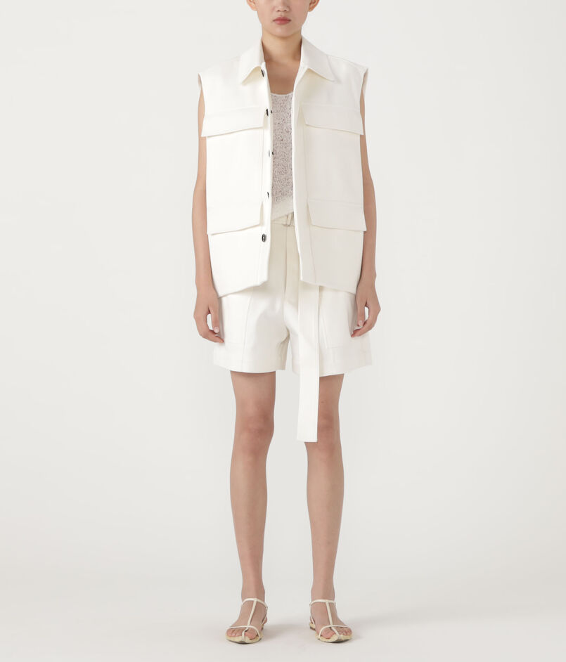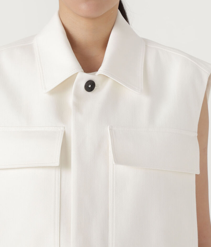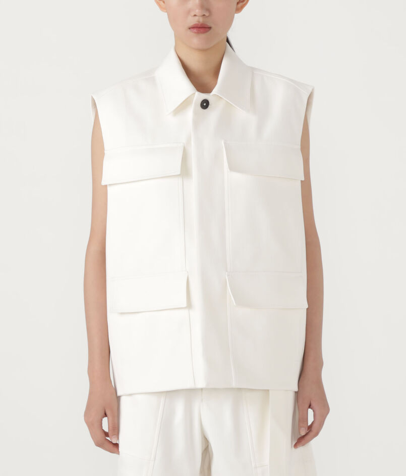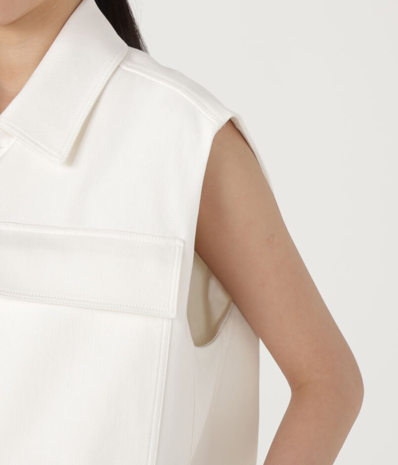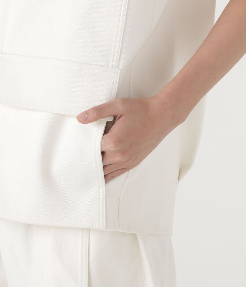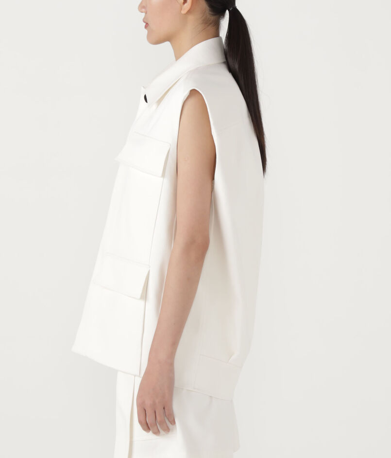 後ろにフォルム感のあるキャップスリーブジレは、フロントの4ポケットがデザインポイント。