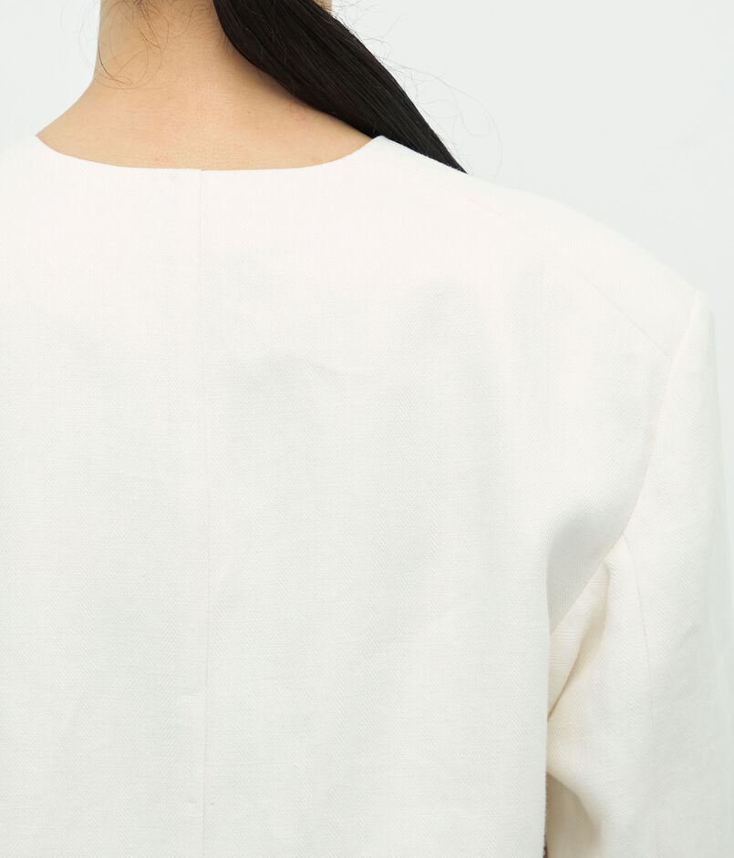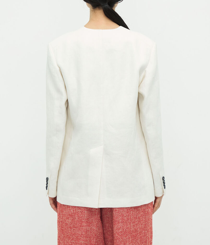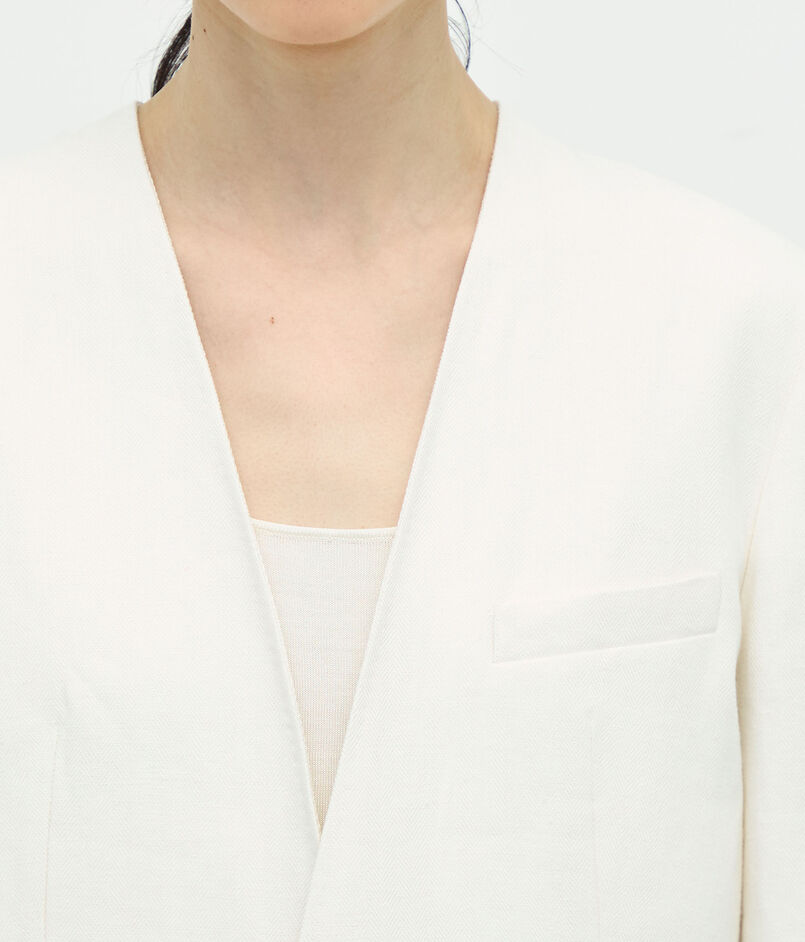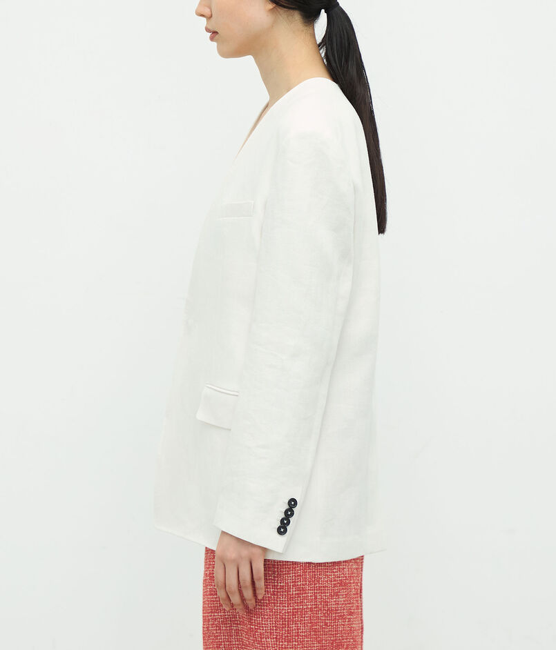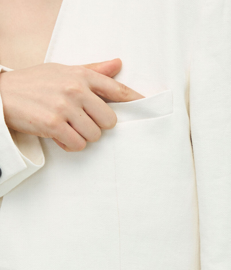 リネンヘリンボーン ノーカラージャケット