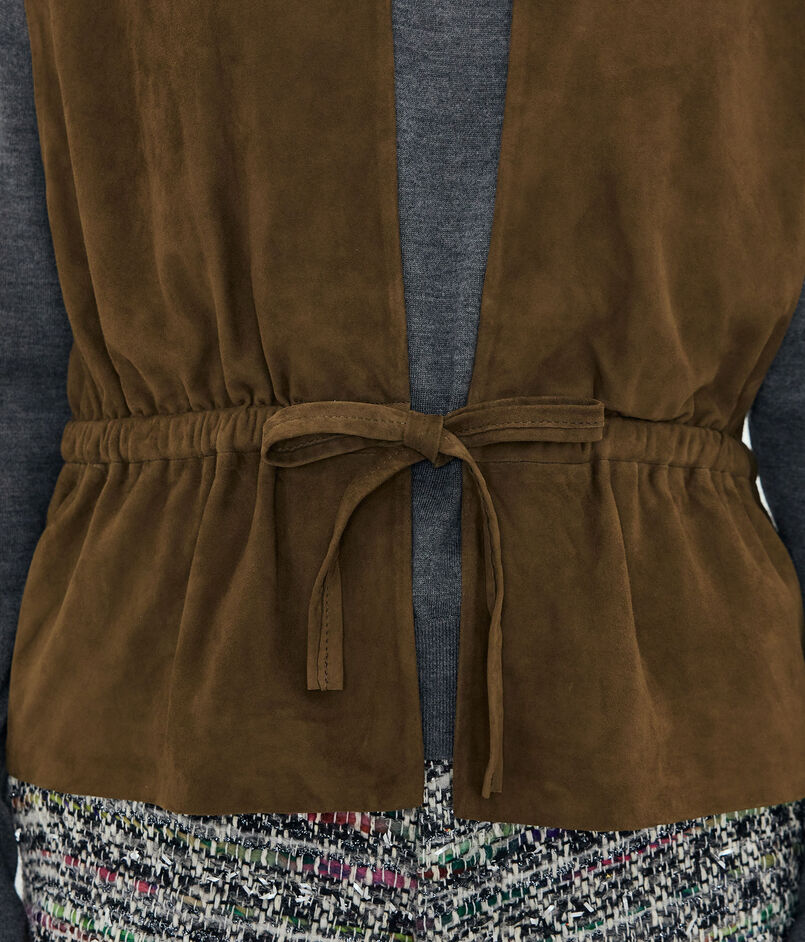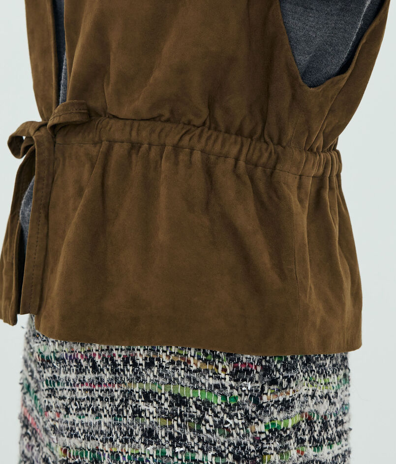 ウエスト部分に共紐付きゴム仕様のショートジレ。