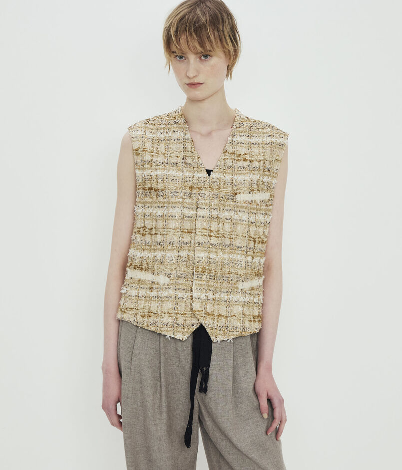 イタリアの高級ファブリックメーカーTOURNIER社製織の意匠糸を使用したゴールドツイード。
