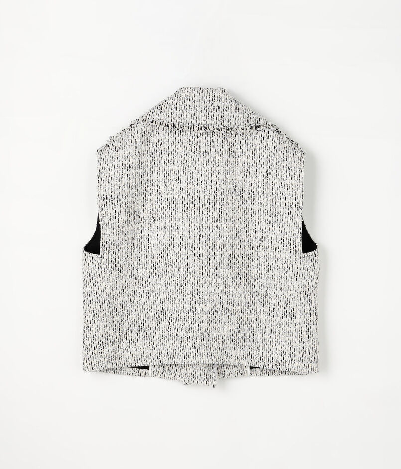 ビッグカラーがデザインポイントの ショートジレ型アウター。