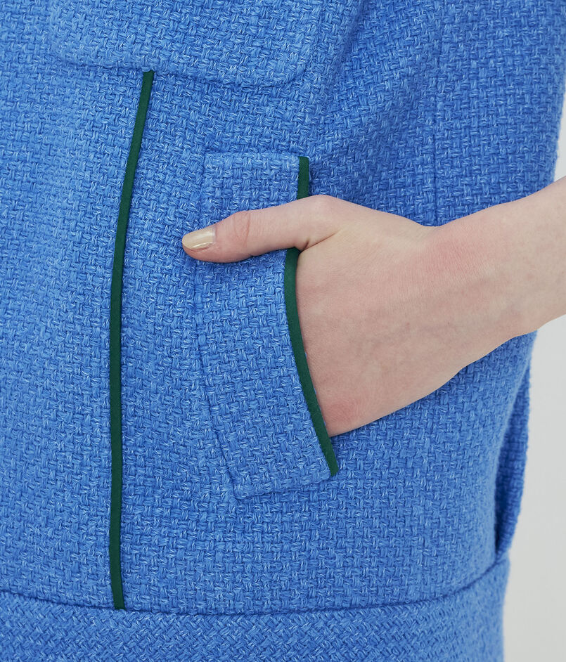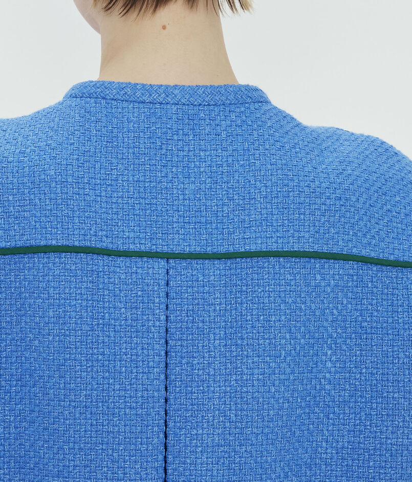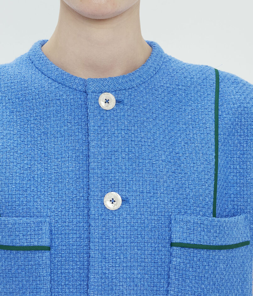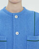 パネル部分やポケット切り替えにバイカラーパイピングを施し、シンプルな中にも上品なアクセントを添えました。