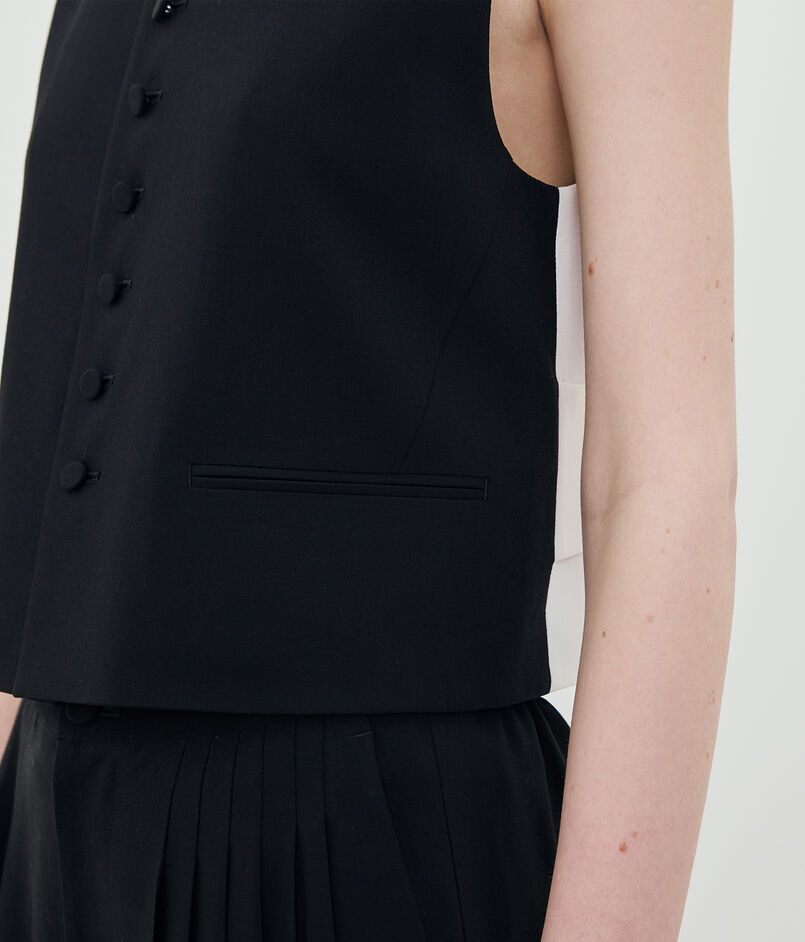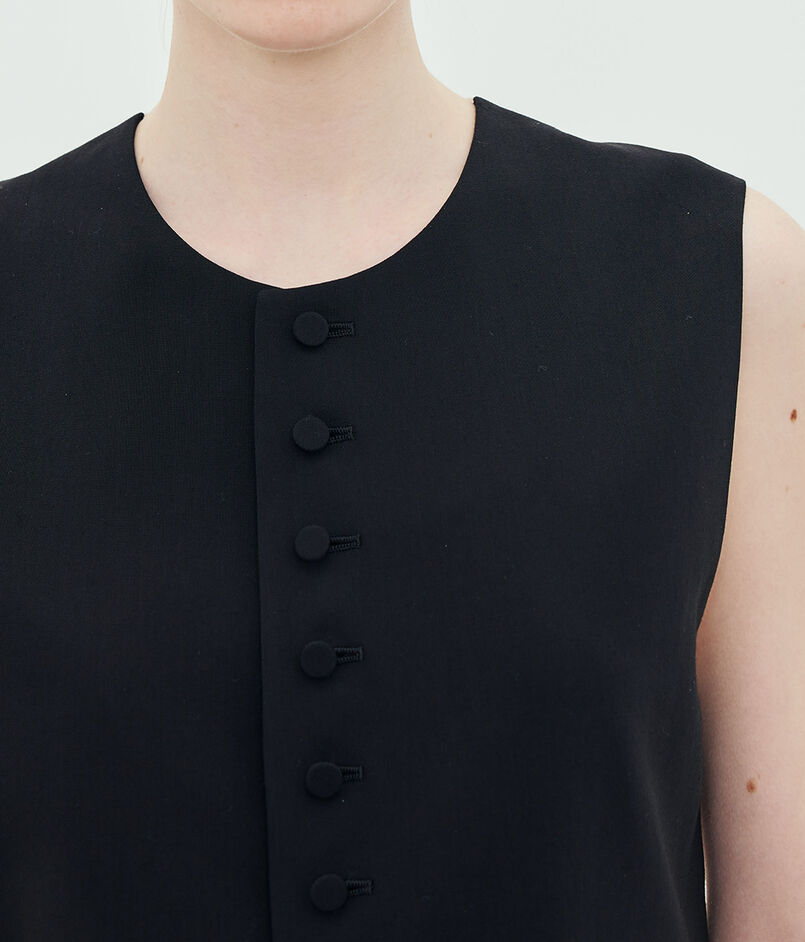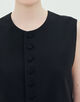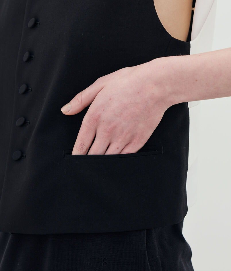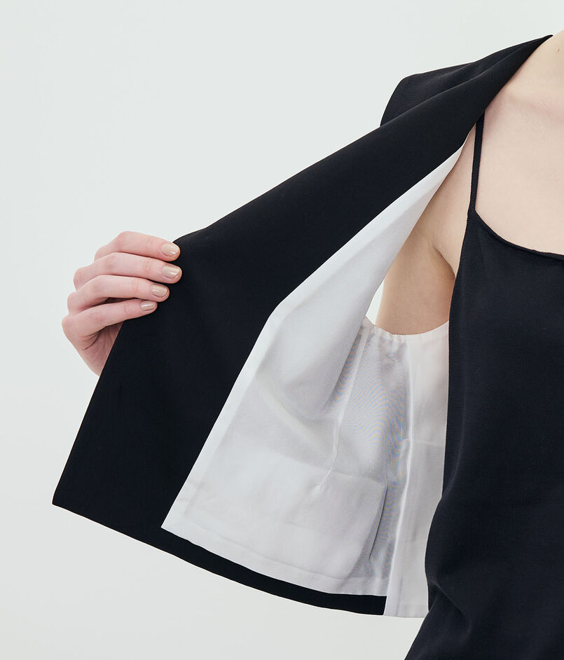 ボタンの間隔をコンパクトなバランスに仕上げたショート丈のジレ。