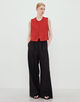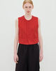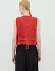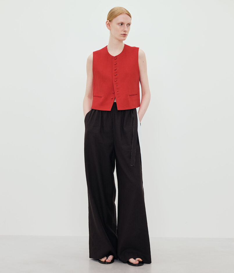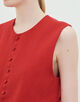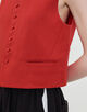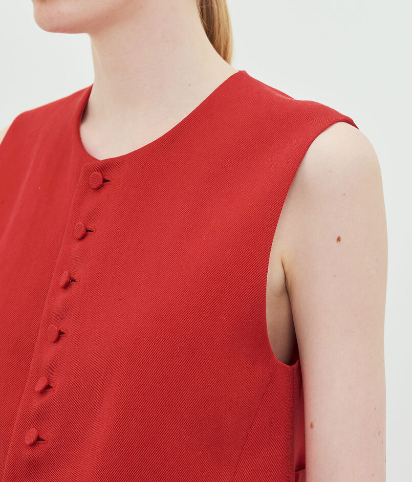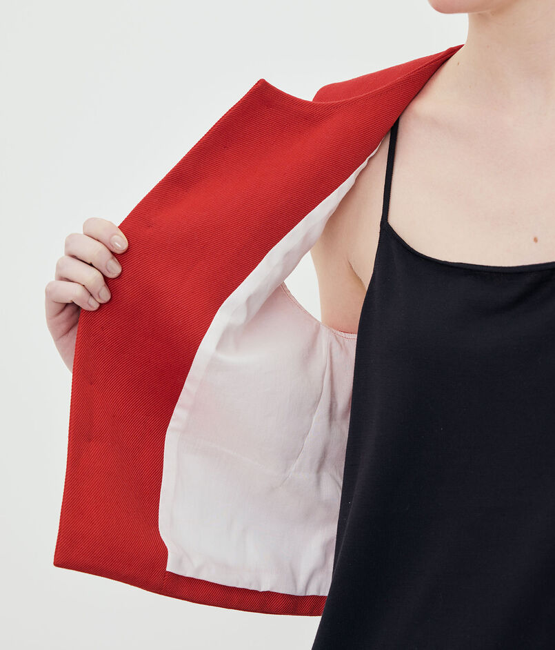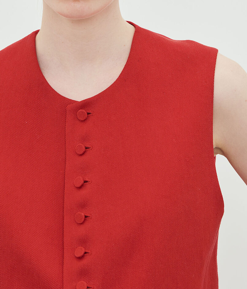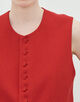 ボタンの間隔をコンパクトなバランスに仕上げたモダンな表情が魅力的なショート丈のジレ。