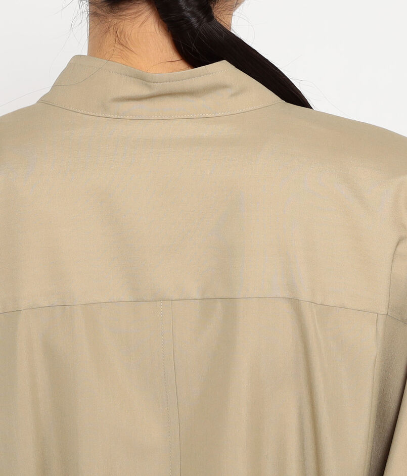 ドロップショルダーのスタンドドレスコートは、後ろの襟ぐりラインを抜いて着ていただくのがおすすめです。