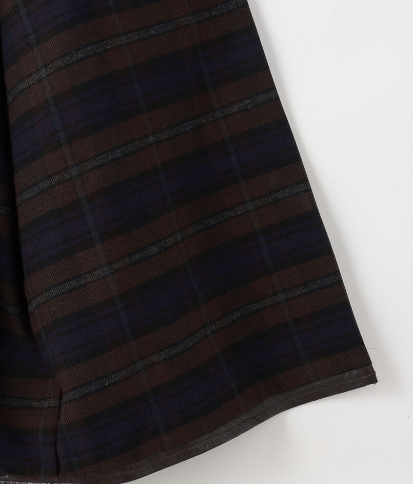 シンプルなステンカラーコートは、身頃裏は温かみのあるタータンチェックを使用しました。