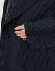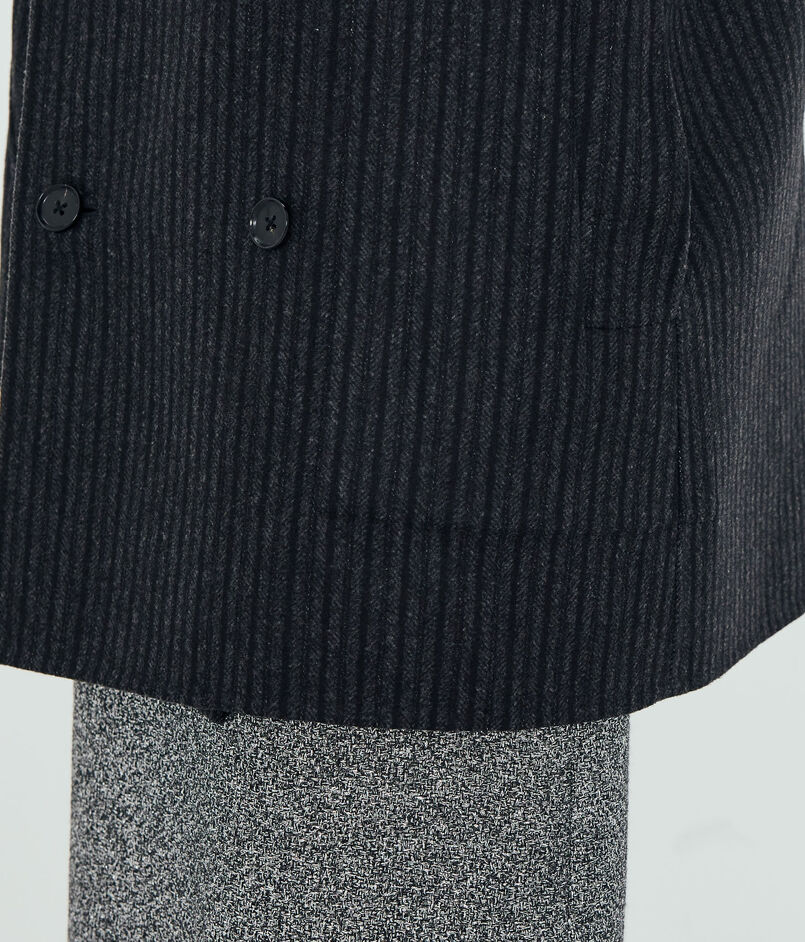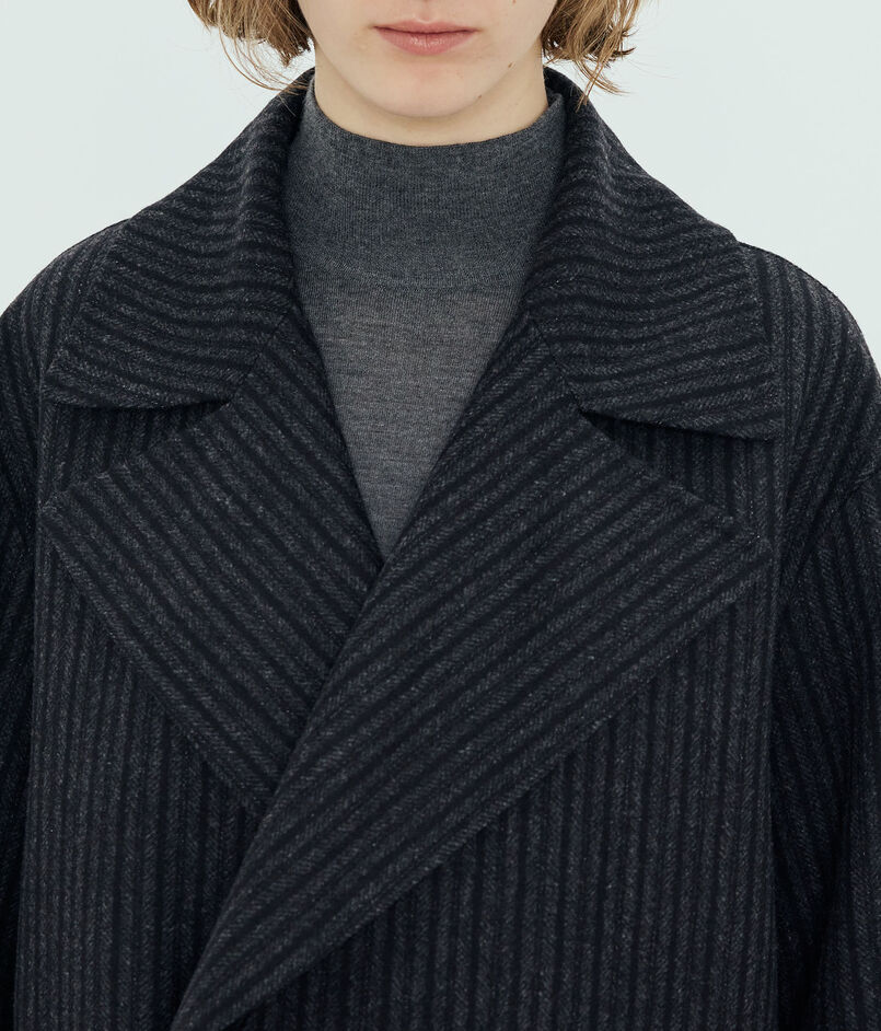 生地の表面はトップ糸ピンストライプ、裏面はトップグレーを使用したリバーシブルで着用可能なコンパクトなウール素材です。