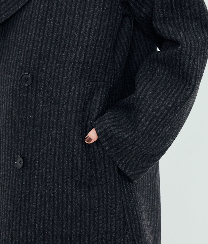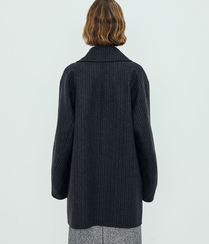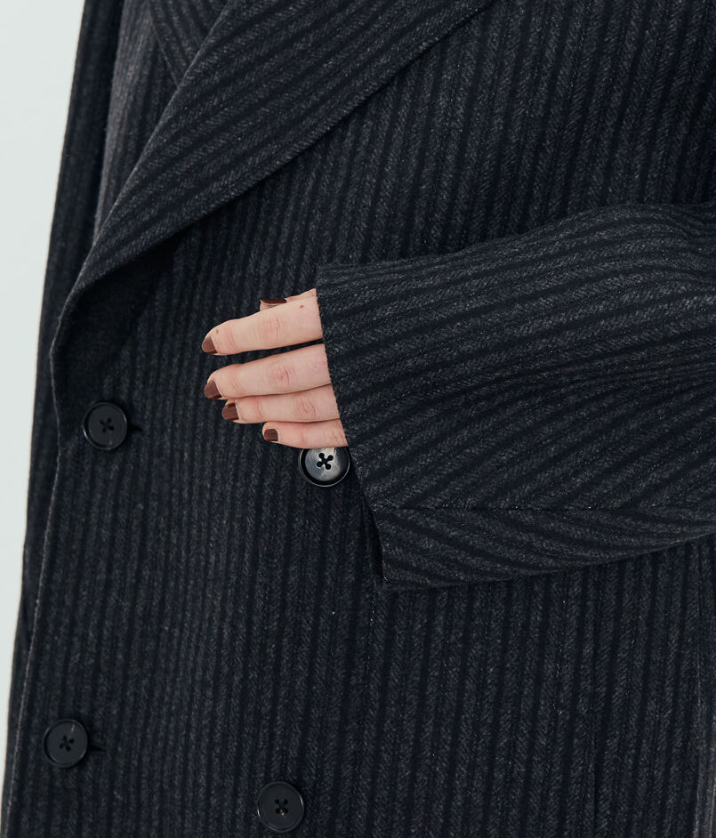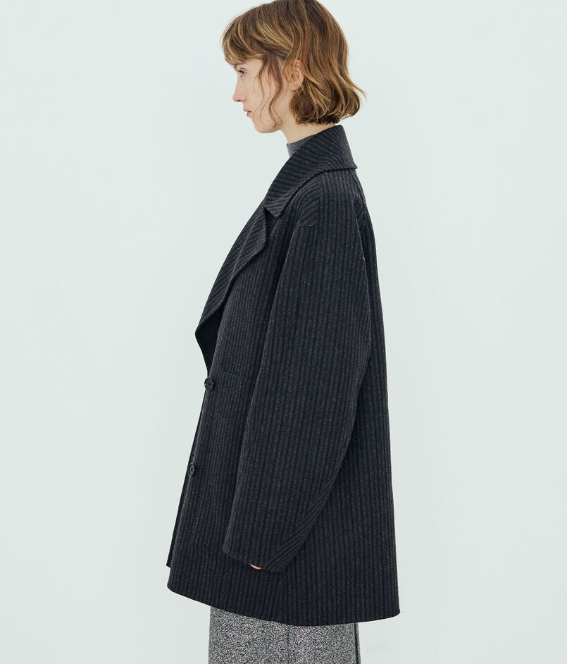 襟の返り位置を低めに設定した大人なバランス感のコートは、ヒップが隠れる着丈のピーコートです。