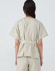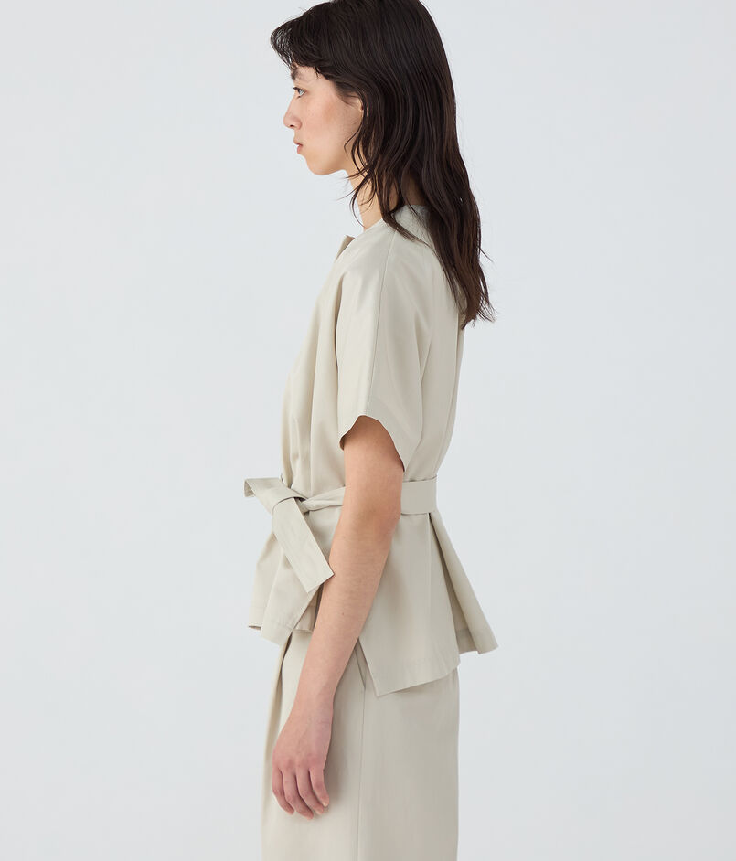 付属のベルトできゅっとウエストマークするだけでなく、袖口を折り返したりラフに羽織るなど、スタイリングに合わせて着こなしに変化を付けてお楽しみいただけます。