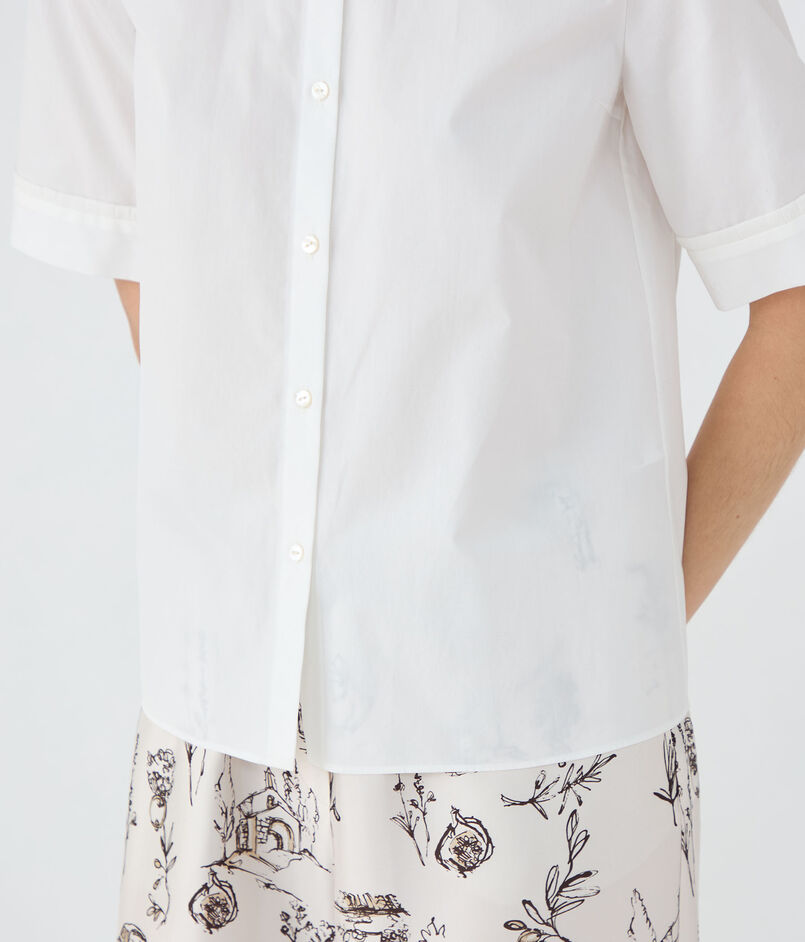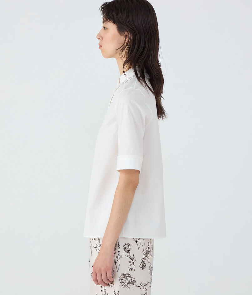 柔らかなタッチと上品な光沢感が特徴のコットンブロード素材を使用したブラウス。