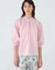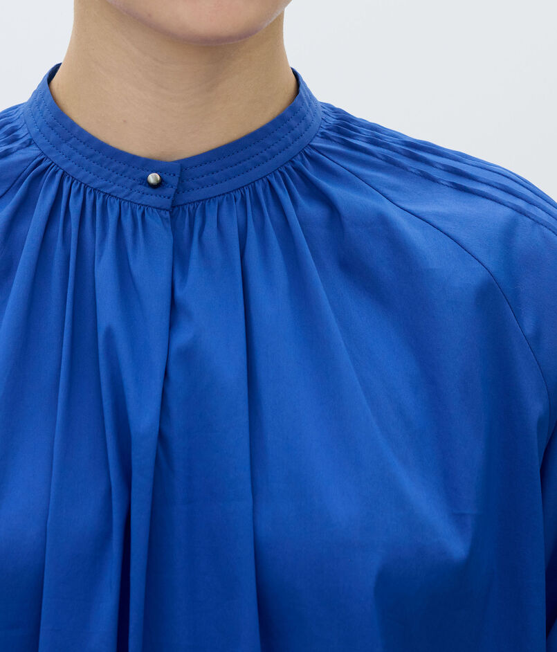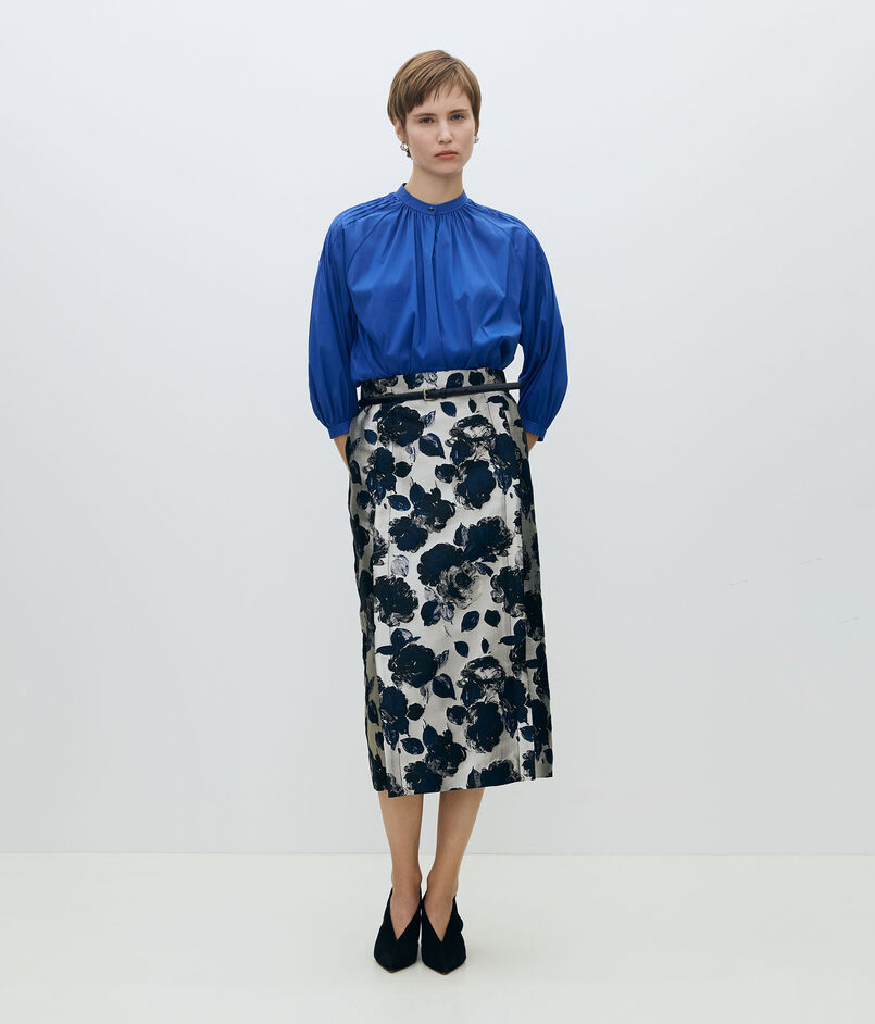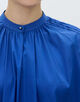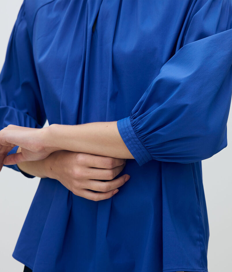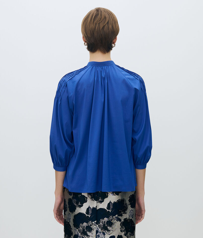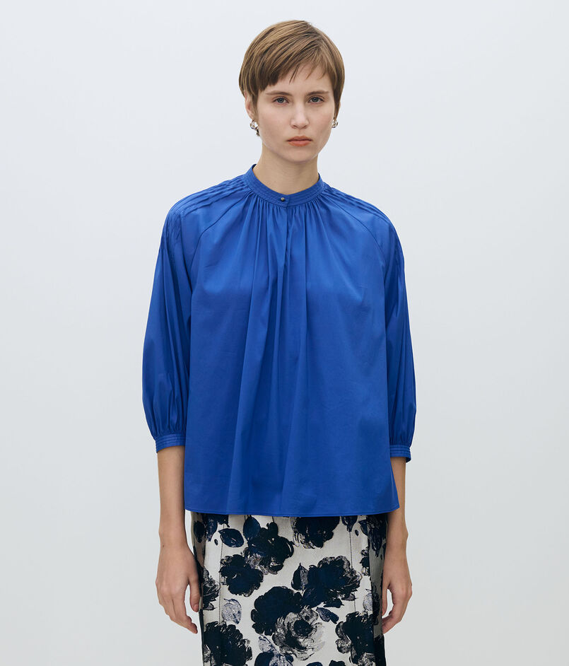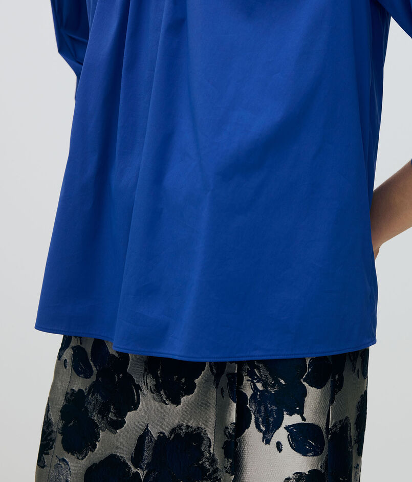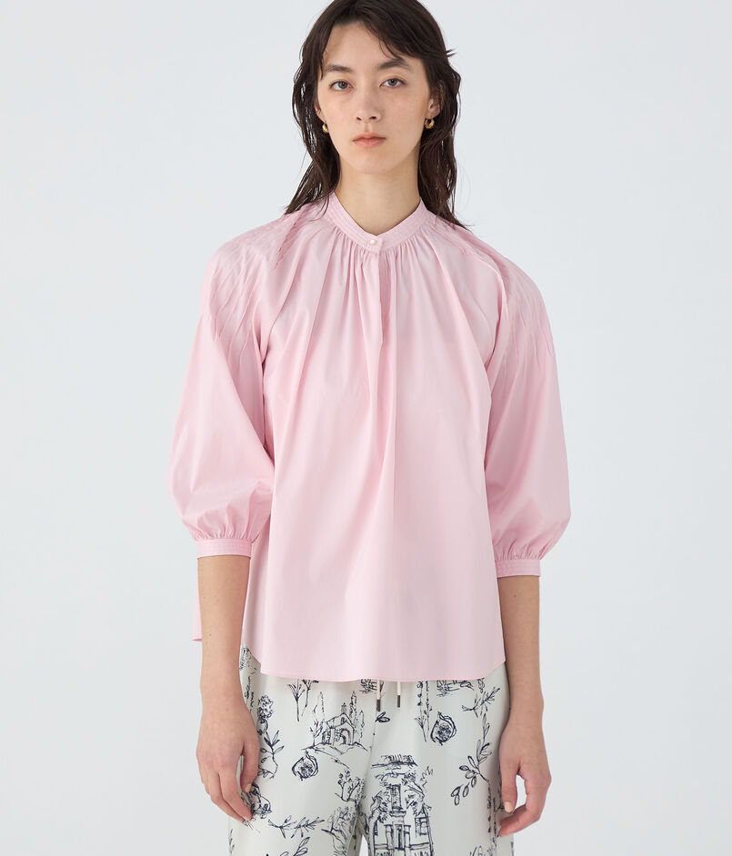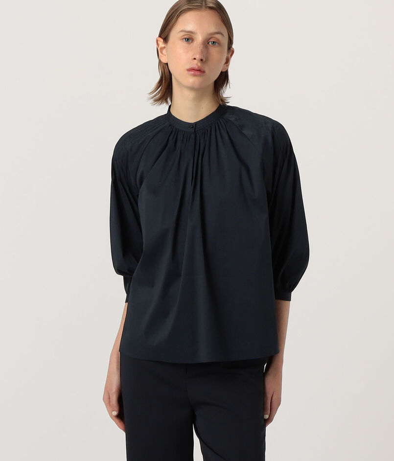 しっとりとしたタッチと美しい光沢感が特徴の、上質なコットンナイロンのブロード素材を使用したブラウス。