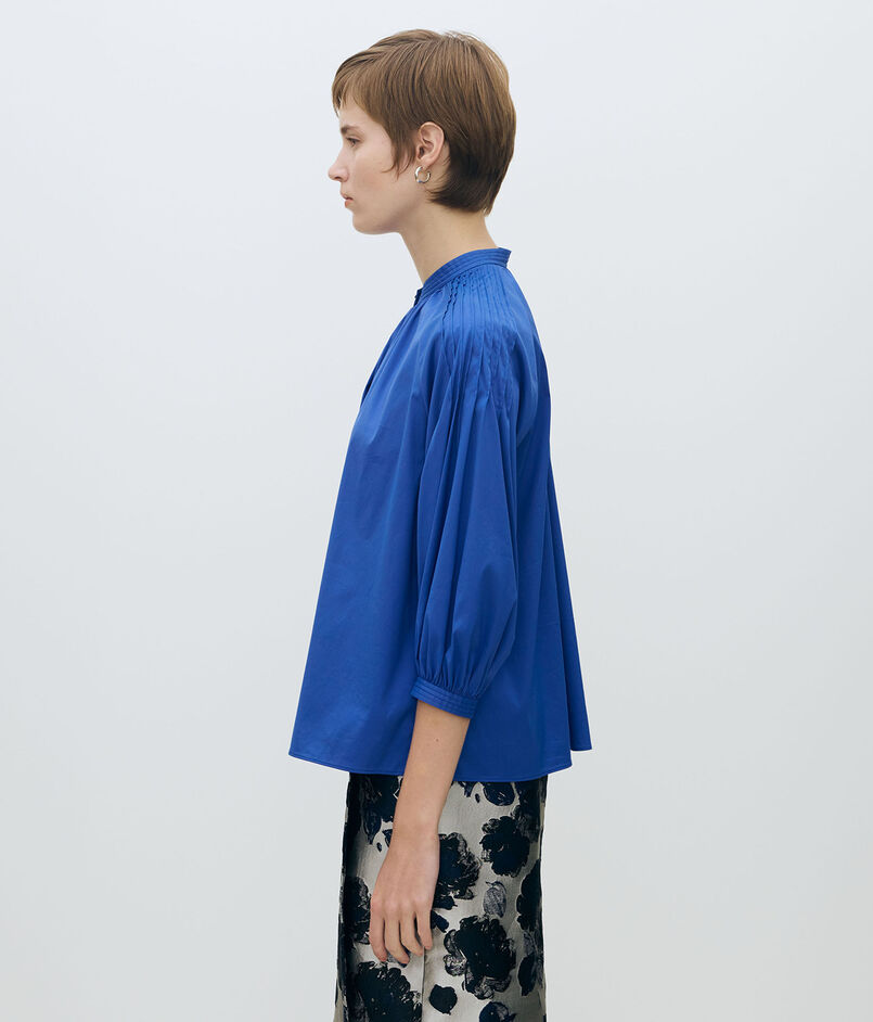 肩部分に施した海外縫製ならではの繊細なピンタックがポイント。