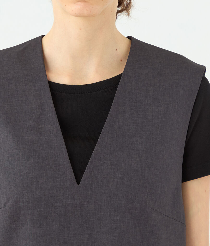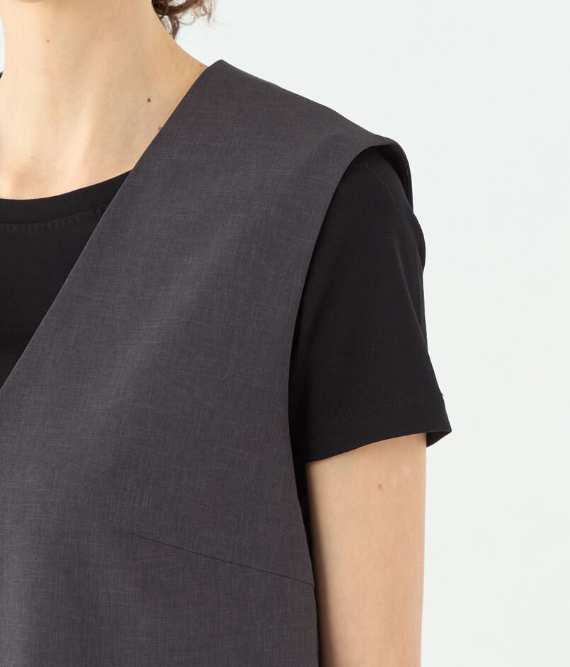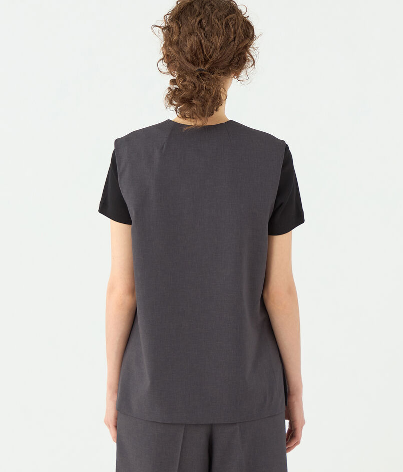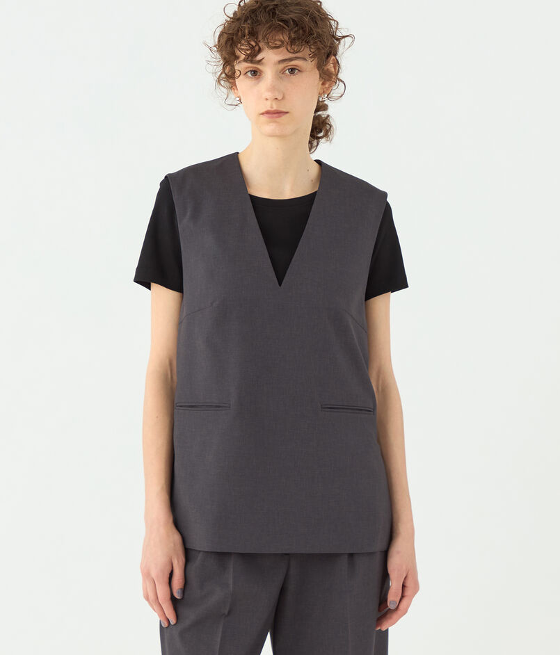 キャミソールをインしてスリーブレスのブラウスとして着用するだけでなく、涼しい時期にはブラウスやカットソーをレイヤードするのもおすすめです。