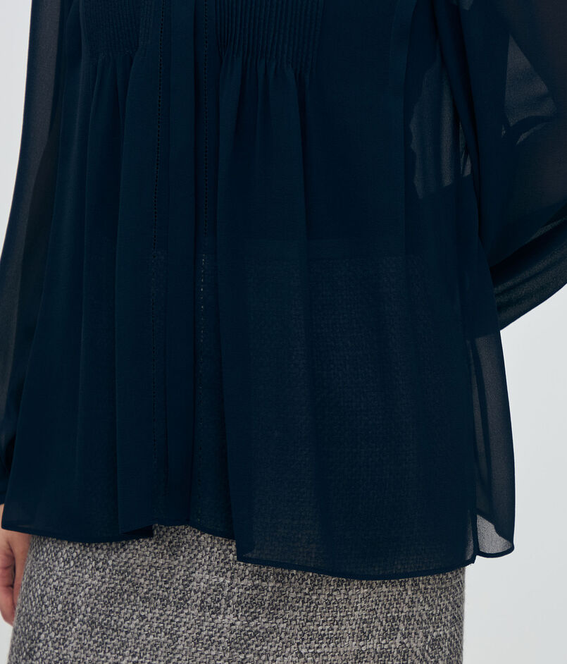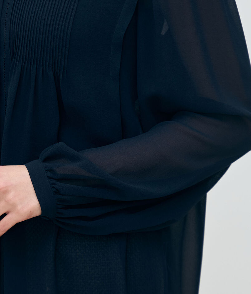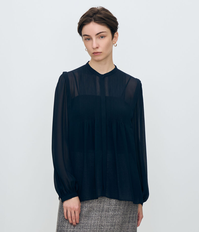 フロントに施した細やかなピンタックディテールでリッチな印象に仕上げた一枚。