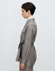 付属のレザー紐でウエストを絞ったり、フロントを開けてさらりと羽織るなどさまざまな着こなしが可能。