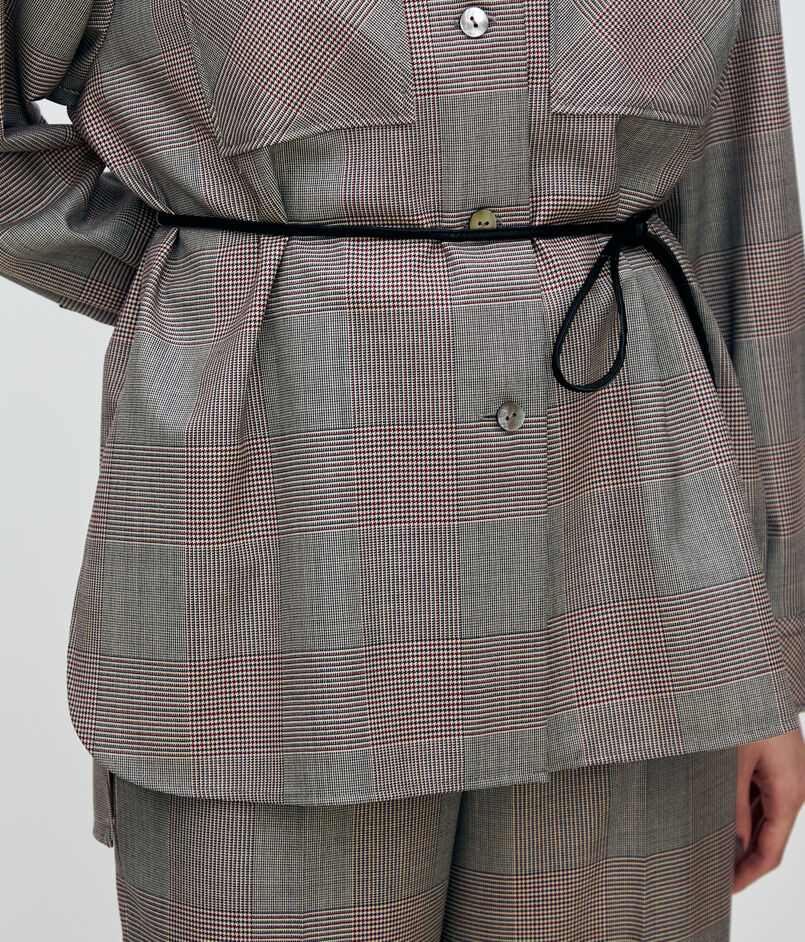 落ち着いたブラウンベースに相性の良いレッドをミックスした、柔らかなカラーリングのグレンチェックが秋冬のムードを高めてくれます。