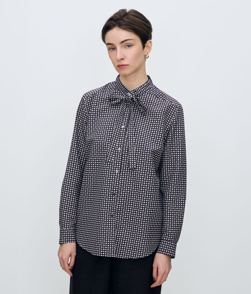 コモンフラワープリント ボウタイブラウス