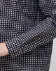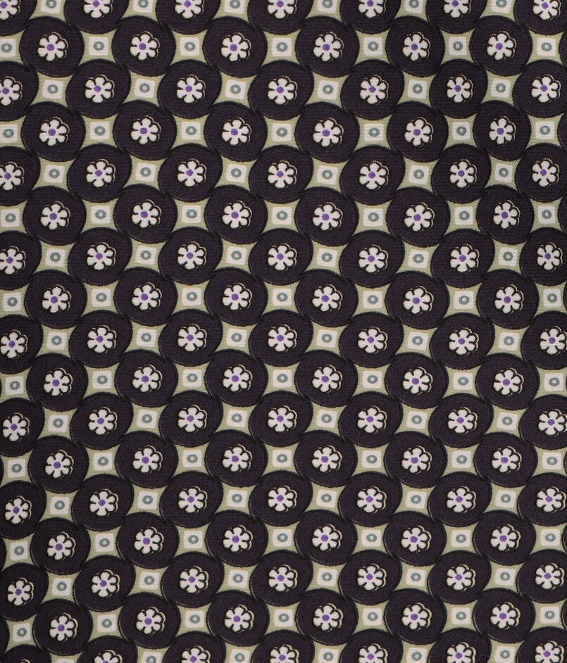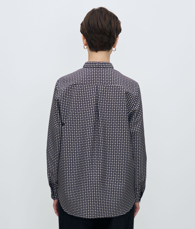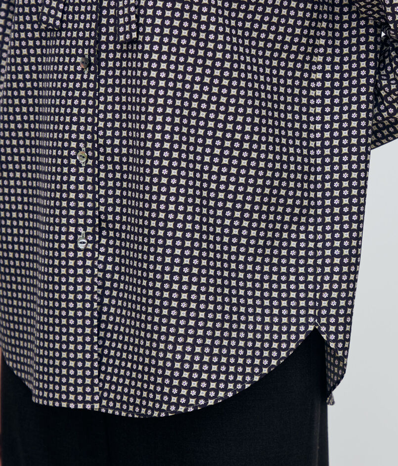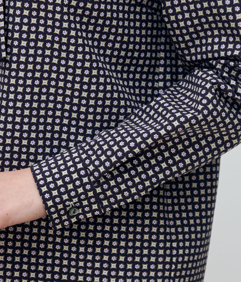 フラワーモチーフをベースにしたモダンな幾何学柄が魅力的なブラウス。