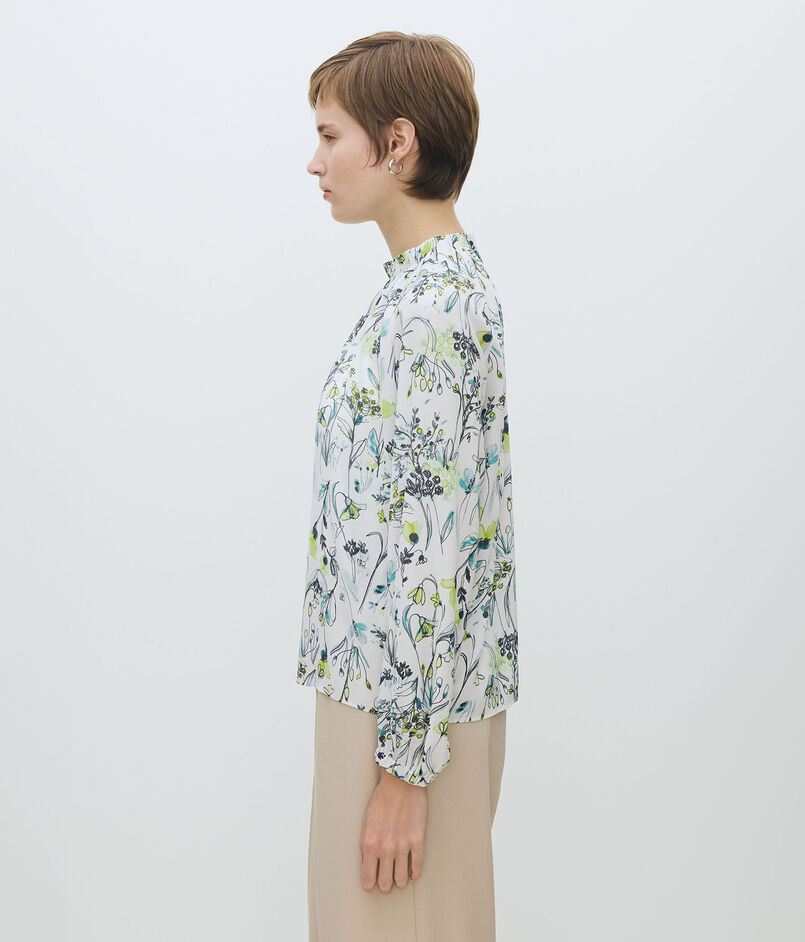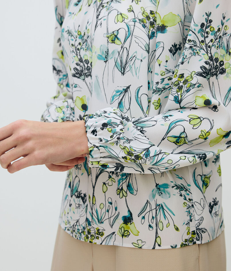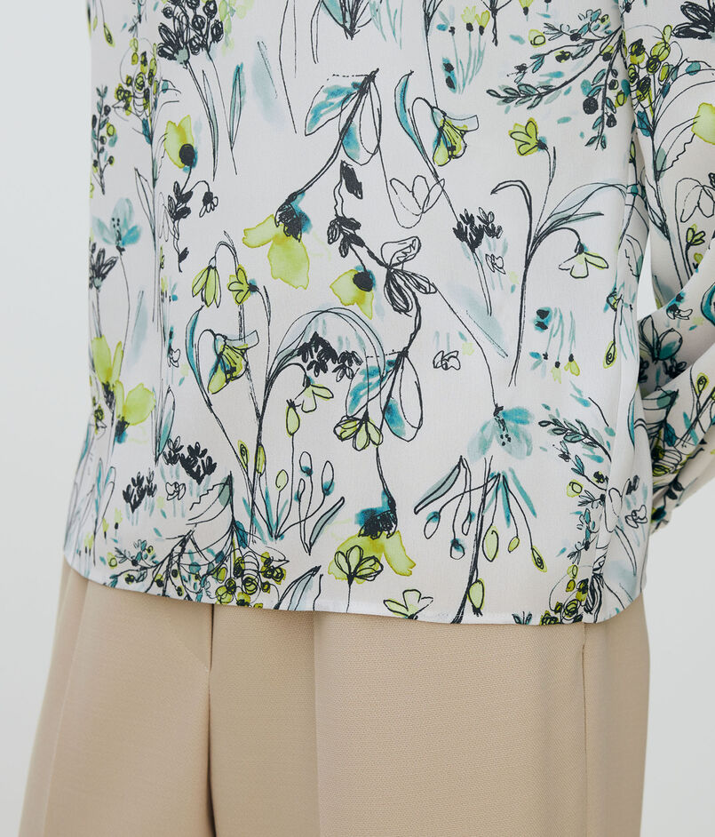 蘭の花をイメージした繊細なフラワーモチーフが目を惹くプリントブラウス。