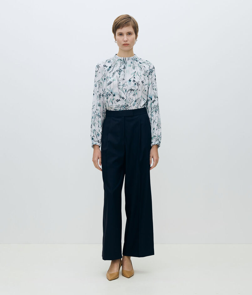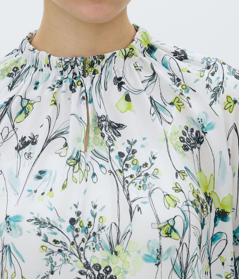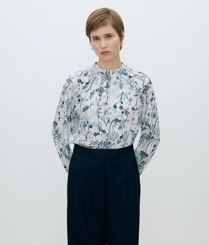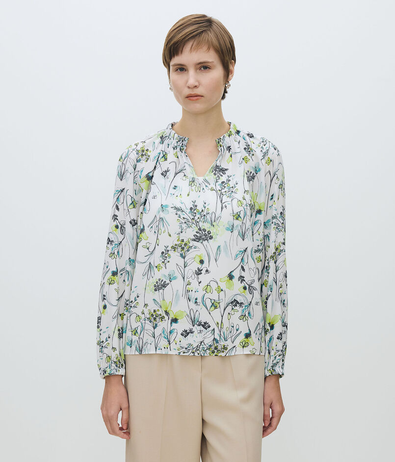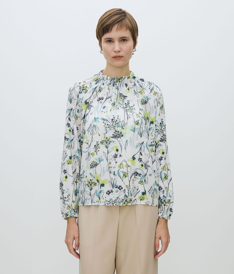 オーキッドフラワープリント ネックギャザーブラウス