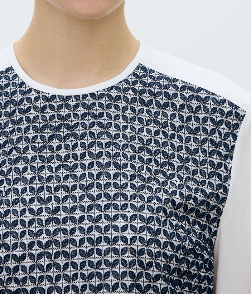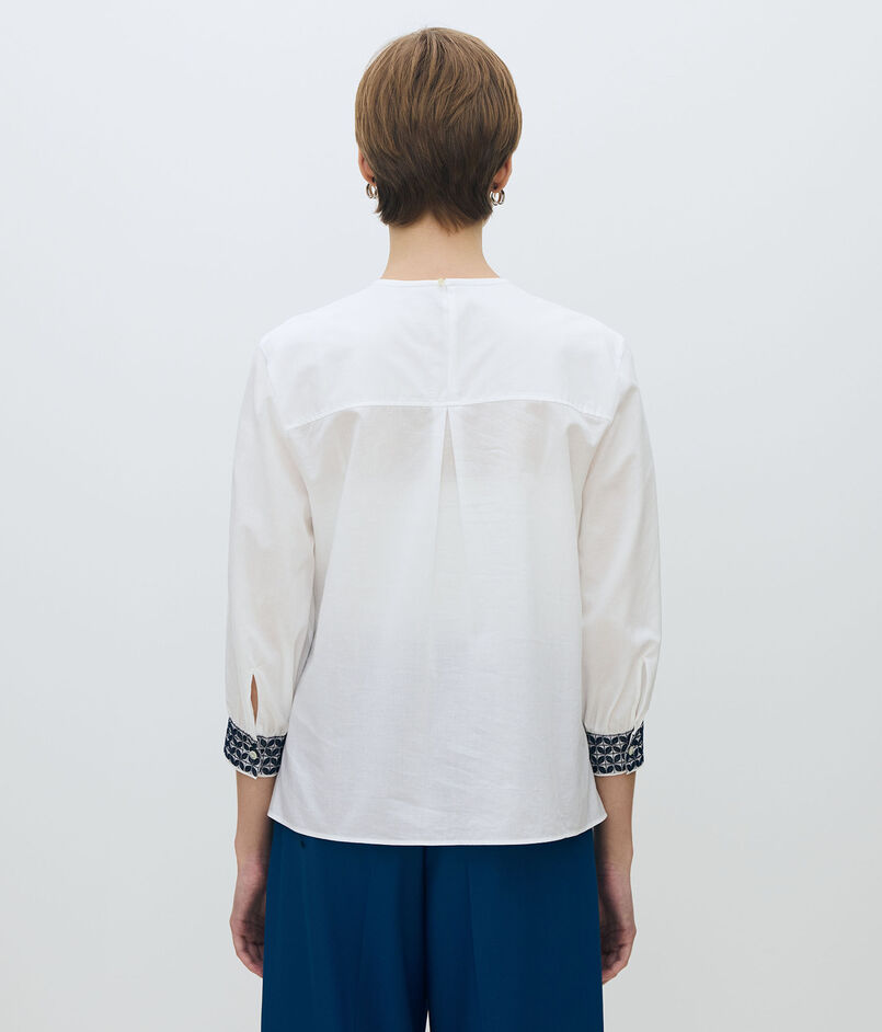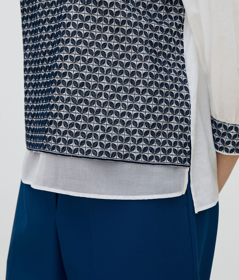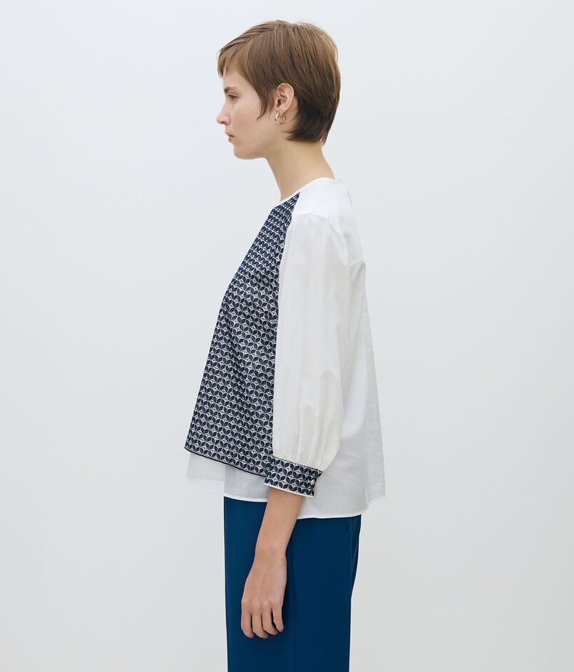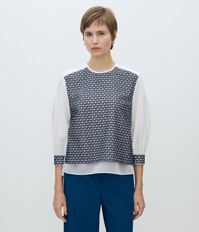 リーフエンブロイダリー コンビプルオーバーブラウス