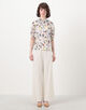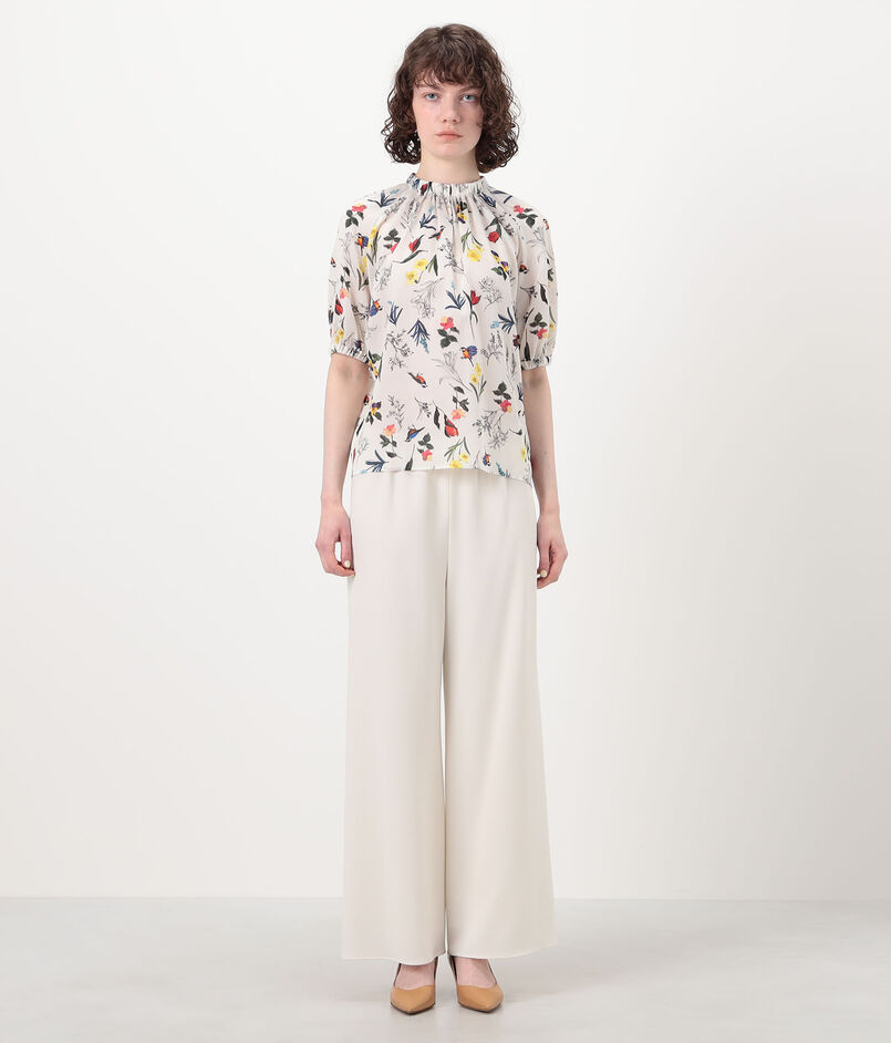 ウィングフラワープリント ネックギャザーブラウス