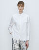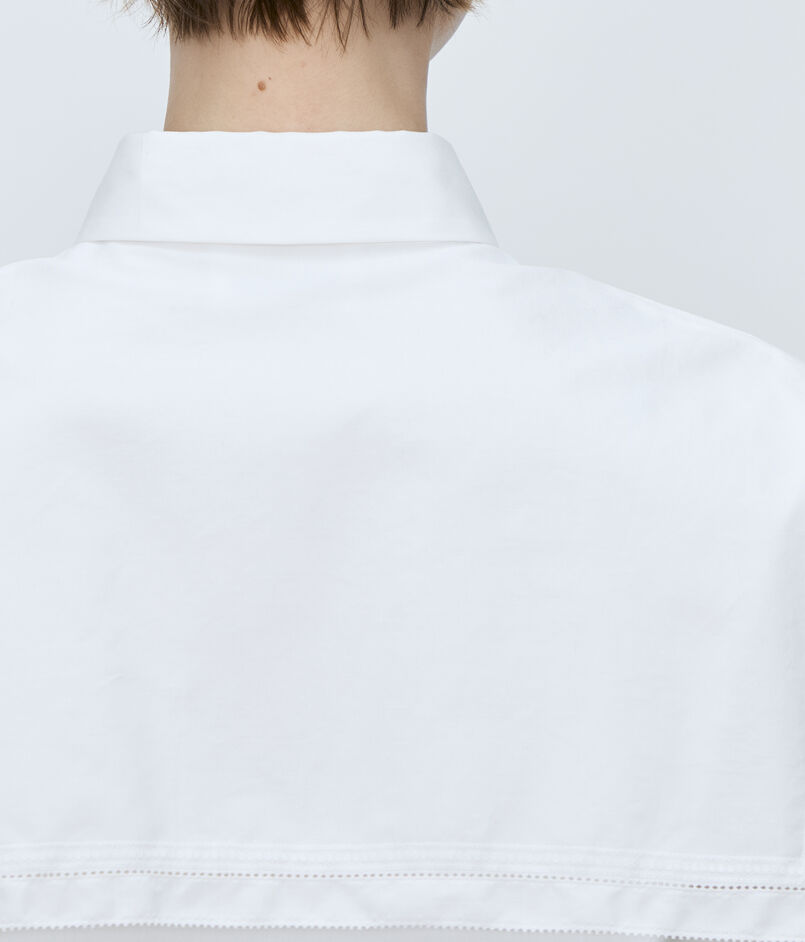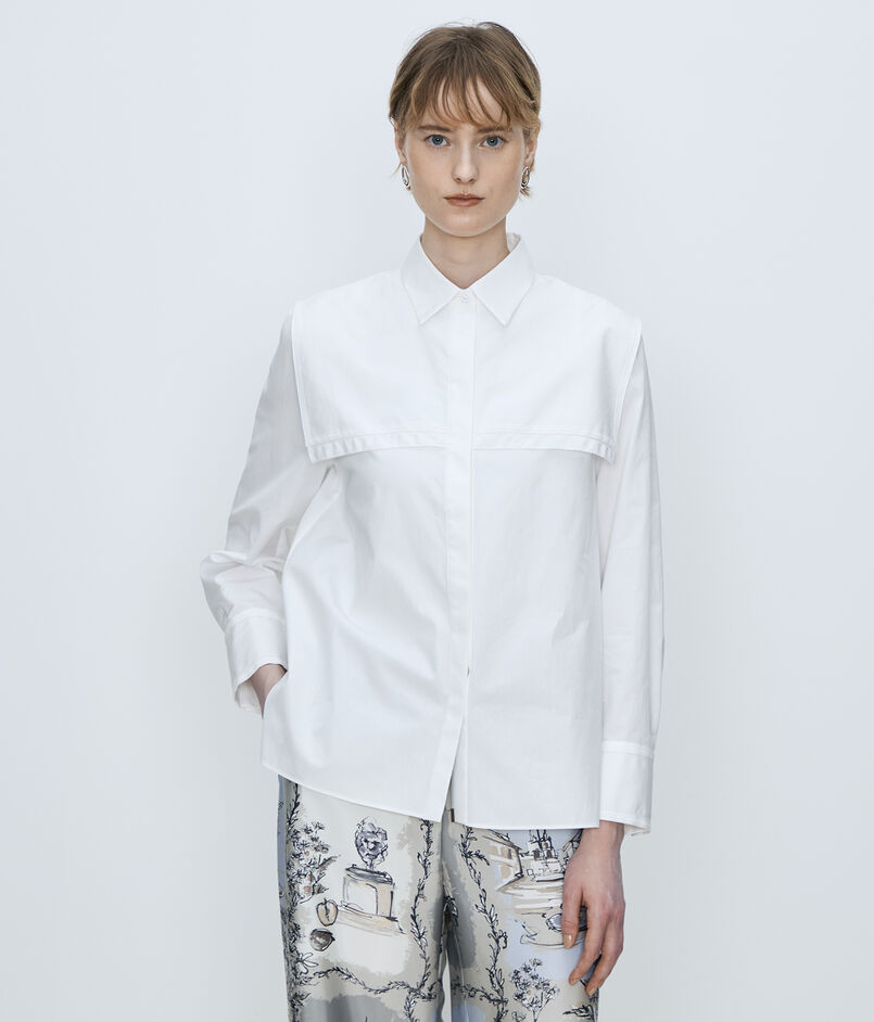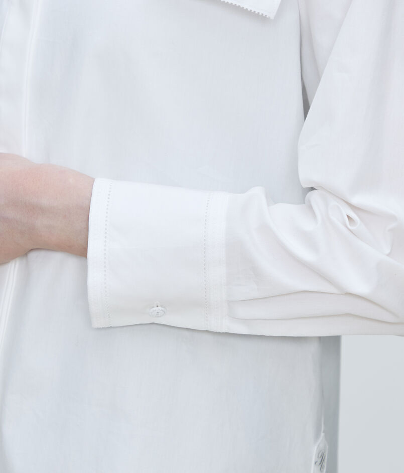 滑らかな肌触りと自然な光沢感が魅力のコンパクトブロード素材を使用したブラウス。