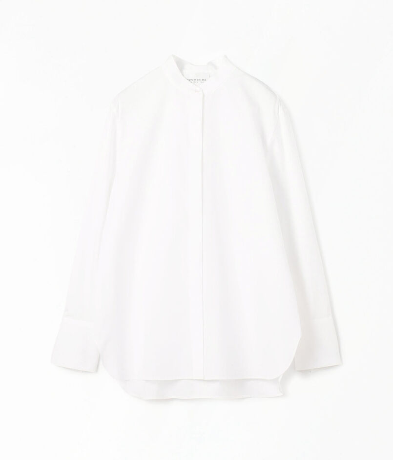 ほど良くゆとりのあるシルエットでリラックス感がありつつも、バンドカラーやストレートスリーブのデザインでシャープな印象に仕上げた一枚。