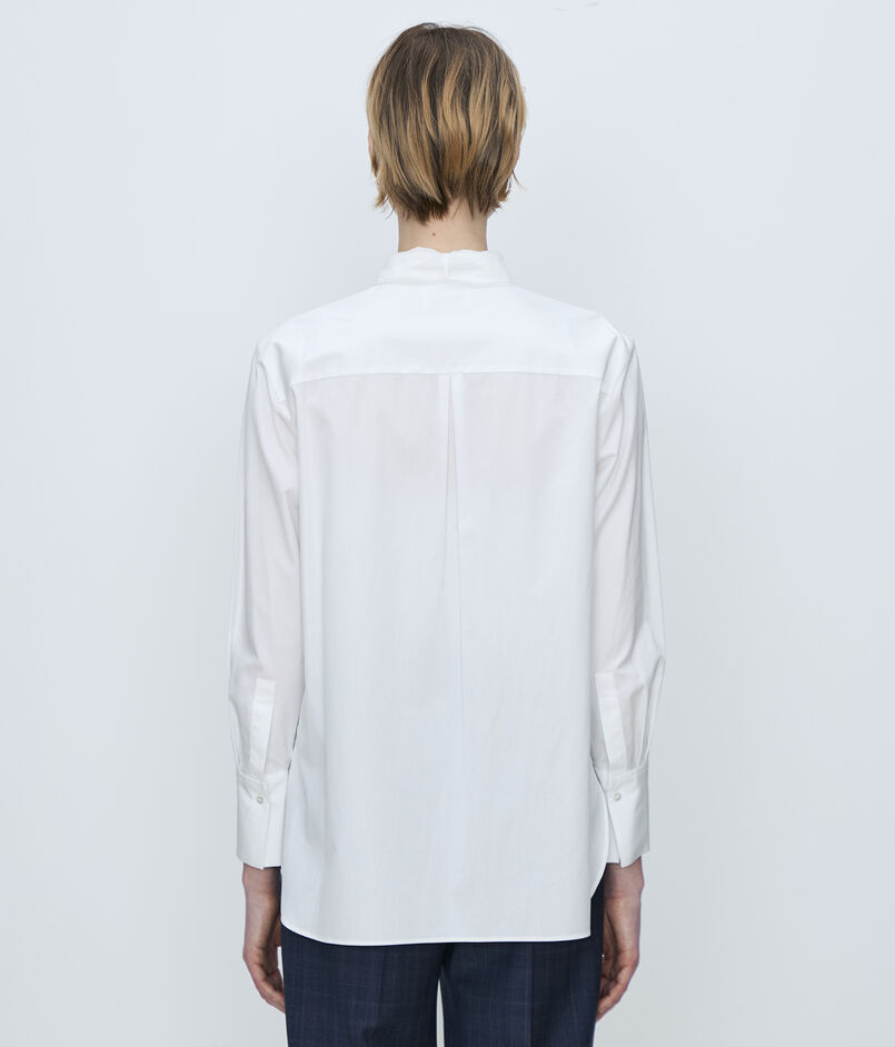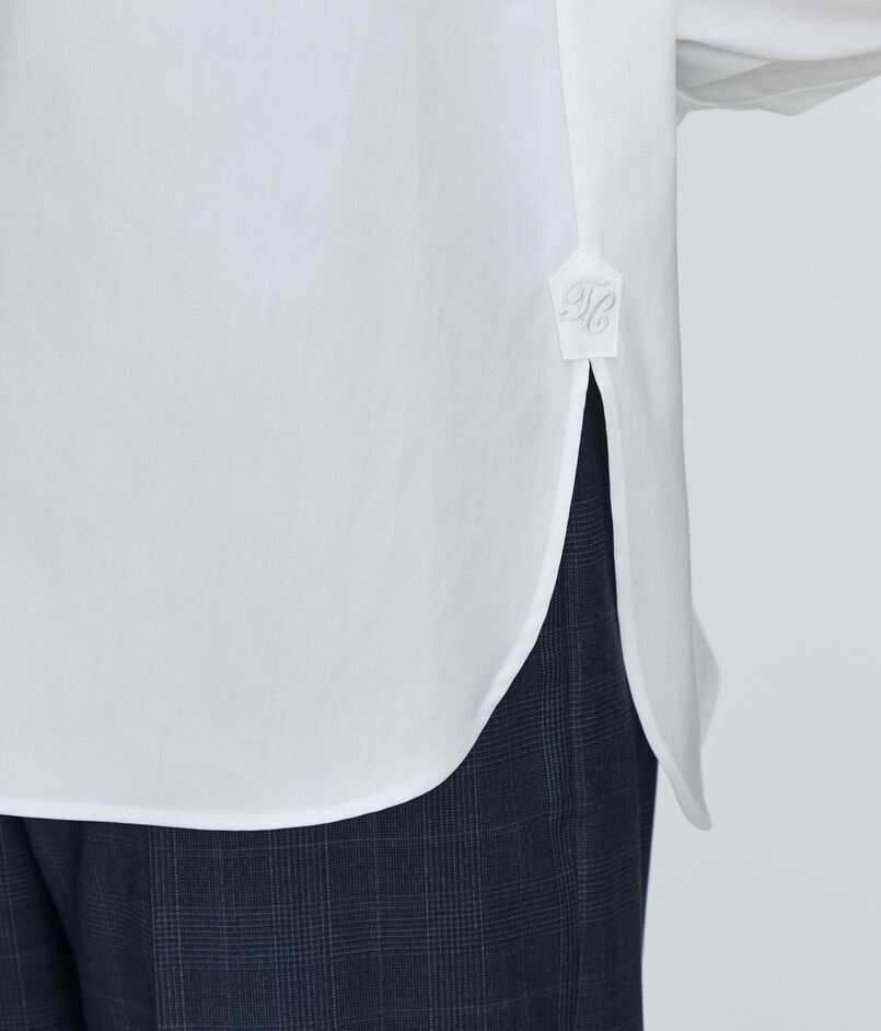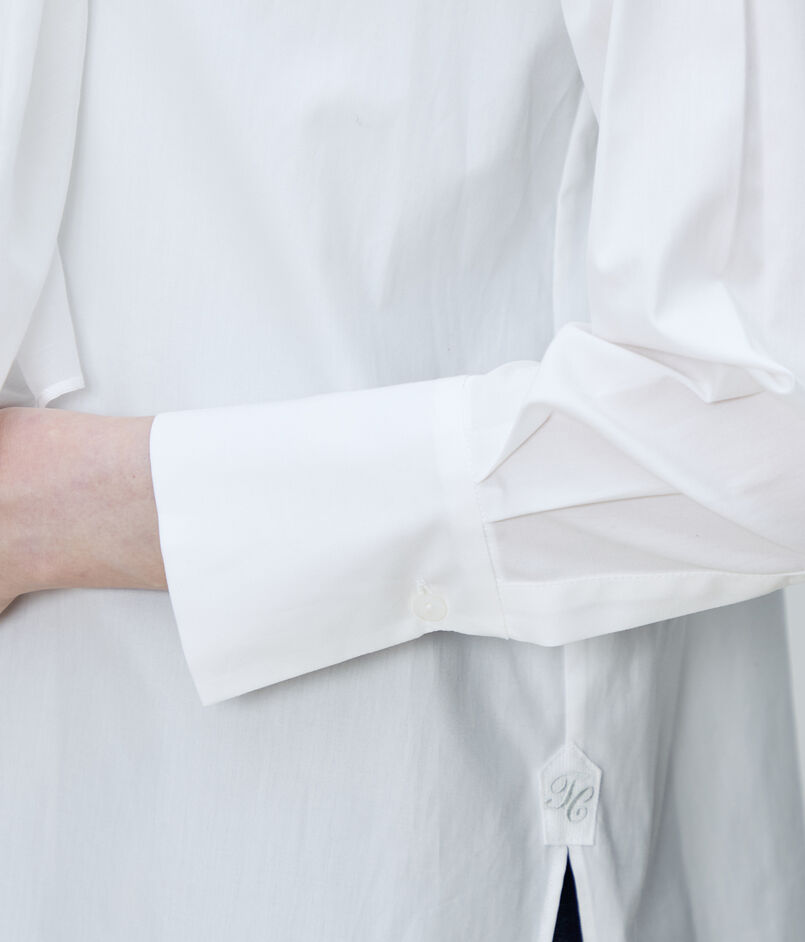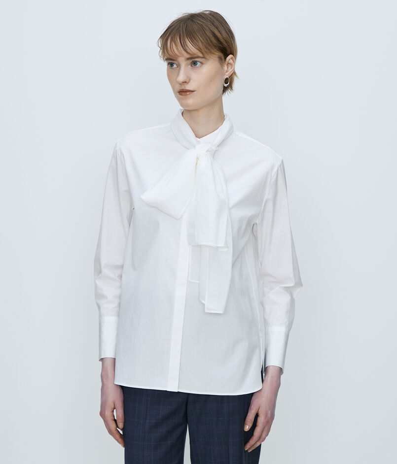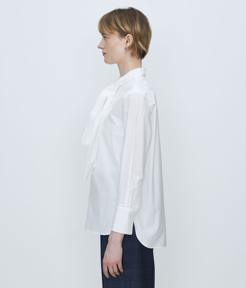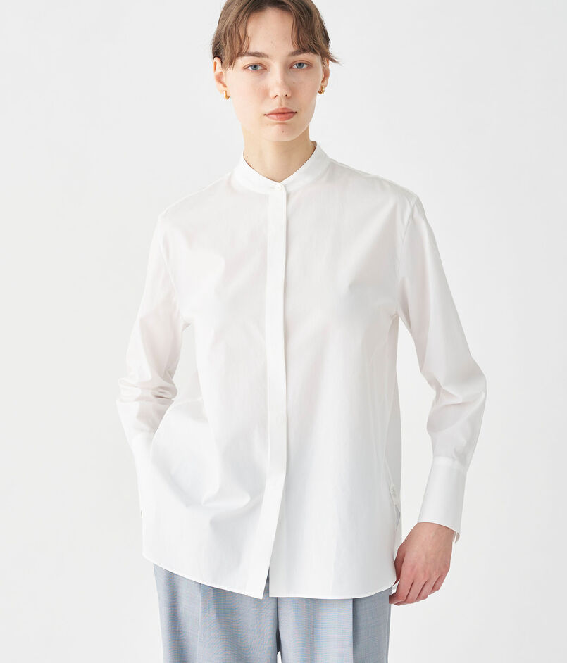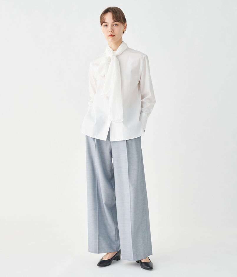 滑らかな肌触りと自然な光沢感が魅力的な〈TOMORROWLAND collection〉定番のコンパクトブロード素材を使用したブラウス。